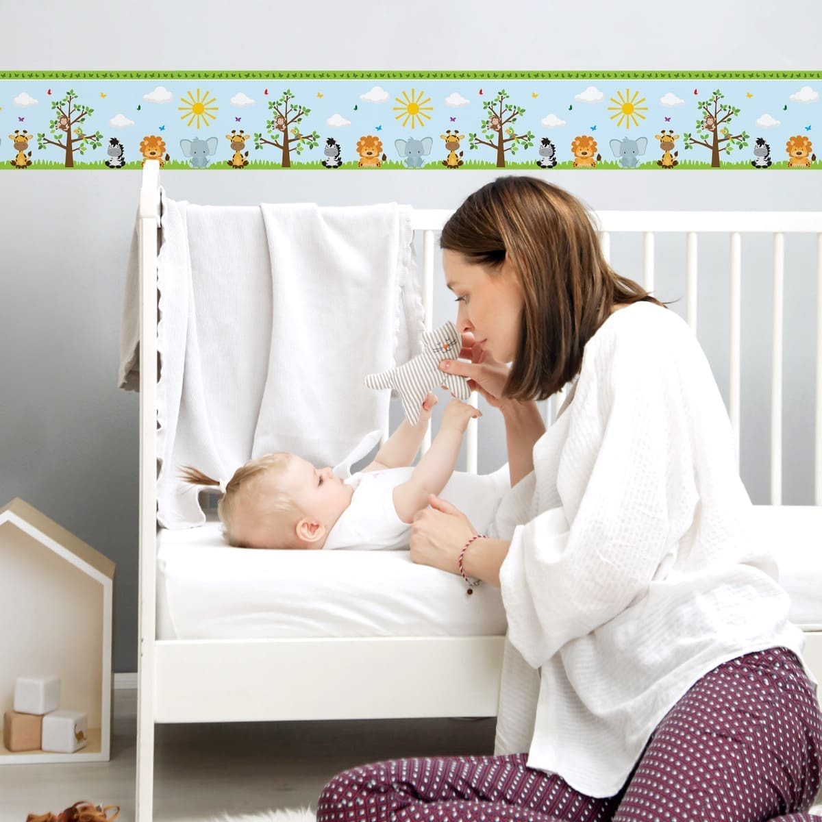 Surpreenda na decoração do quarto de bebê com a Faixa Decorativa Animais Safari Zoo Adesiva aqui da Quartinhos e de quebra ganhe muitos elogios!