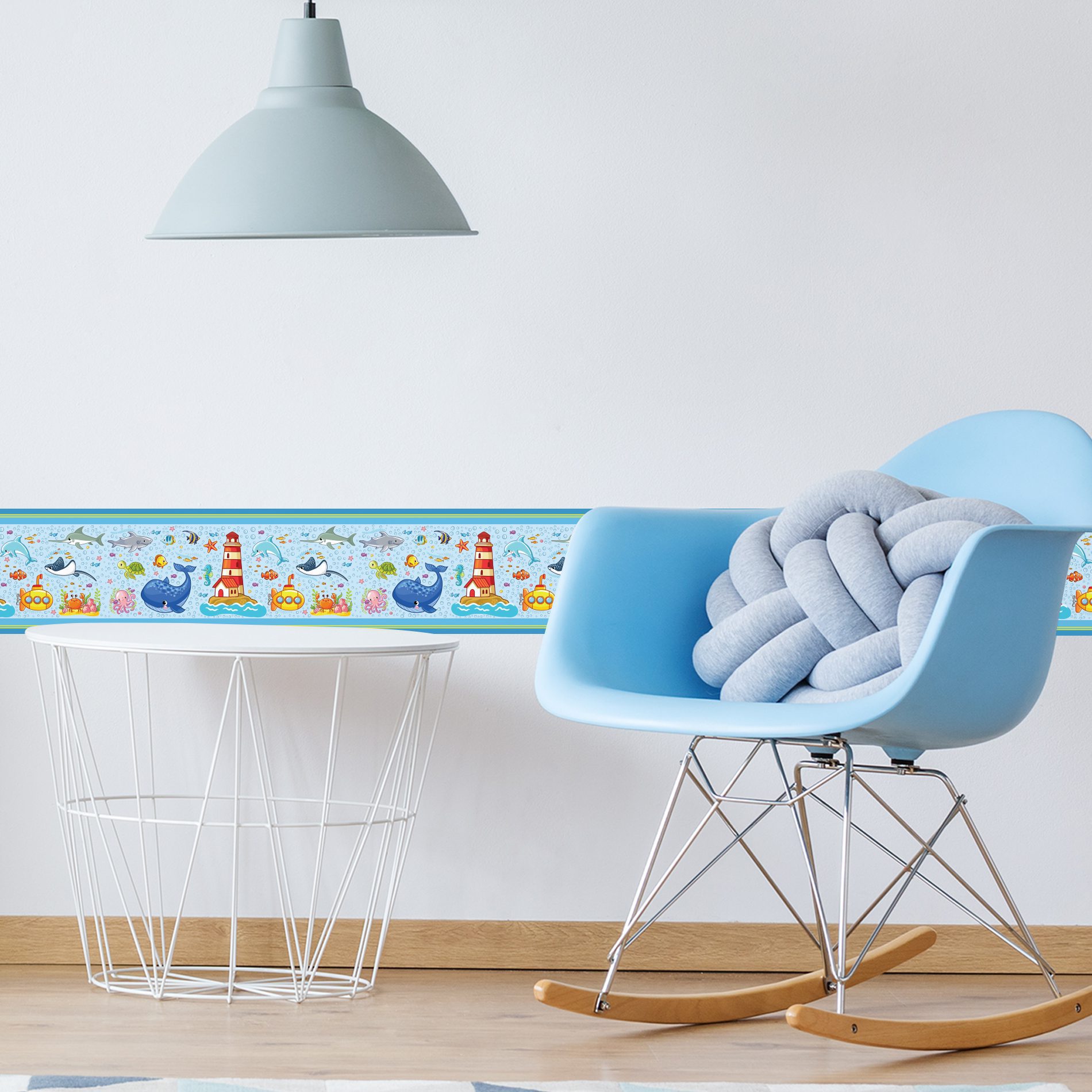 Dimensões e Características da Faixa Decorativa de Parede Infantil Fundo do Mar 15cmx3m