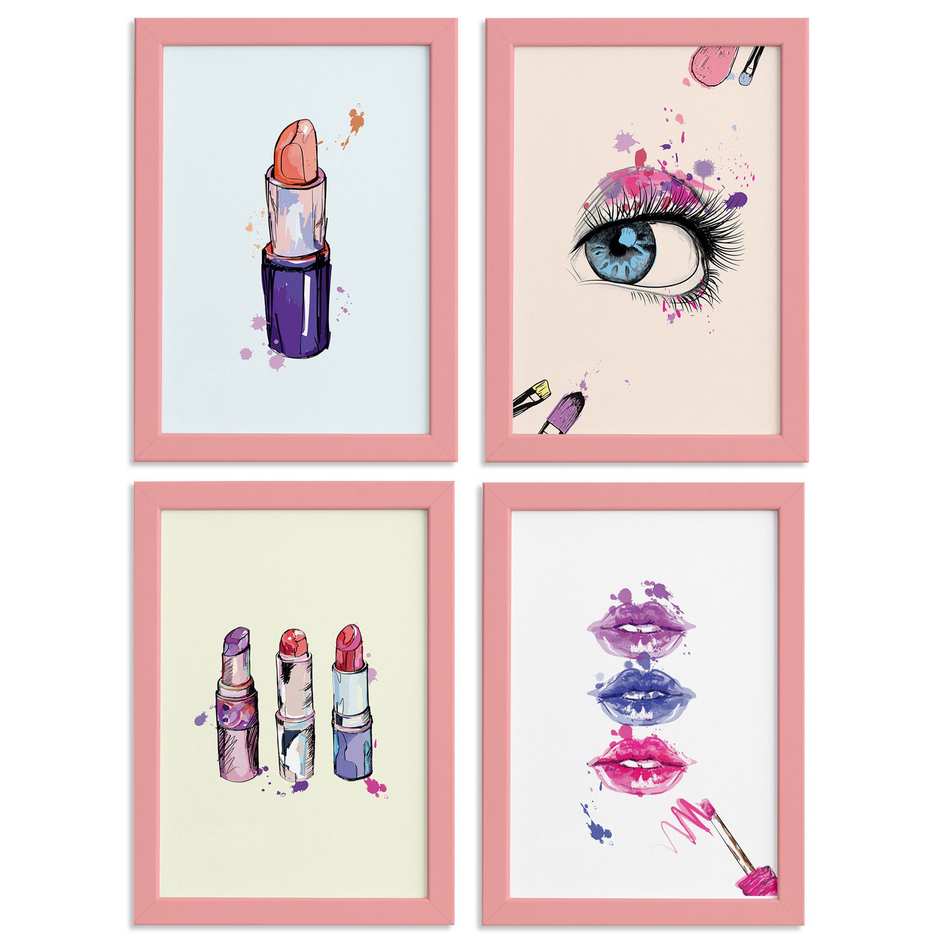 Kit Quadros Maquiagem Moldura Rosa 4un 22x32cm