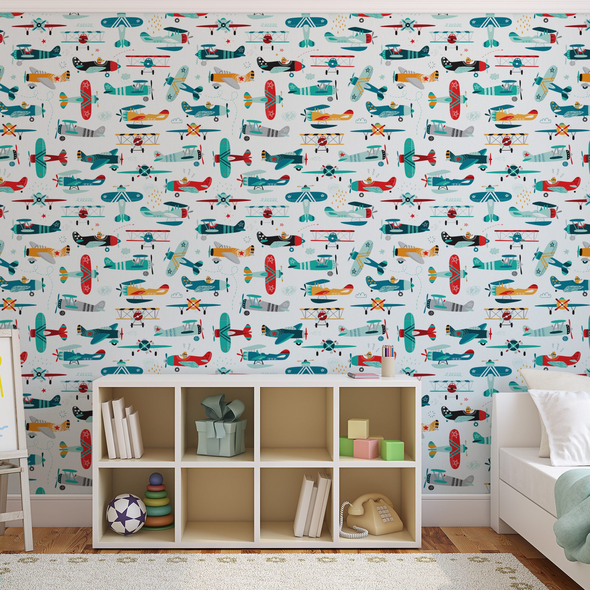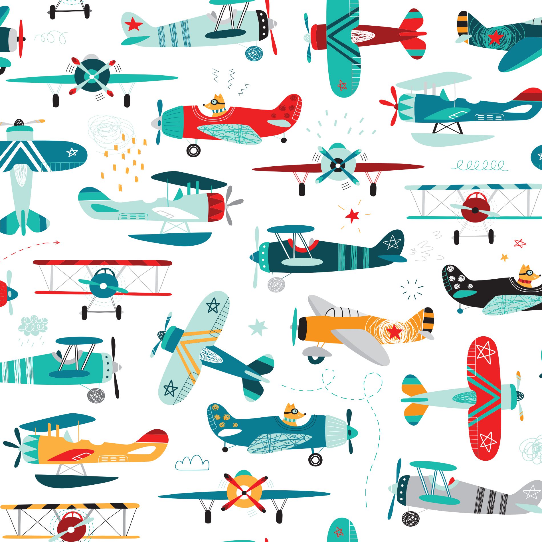 Papel de Parede Aviões Coloridos e Raposa 57x270cm