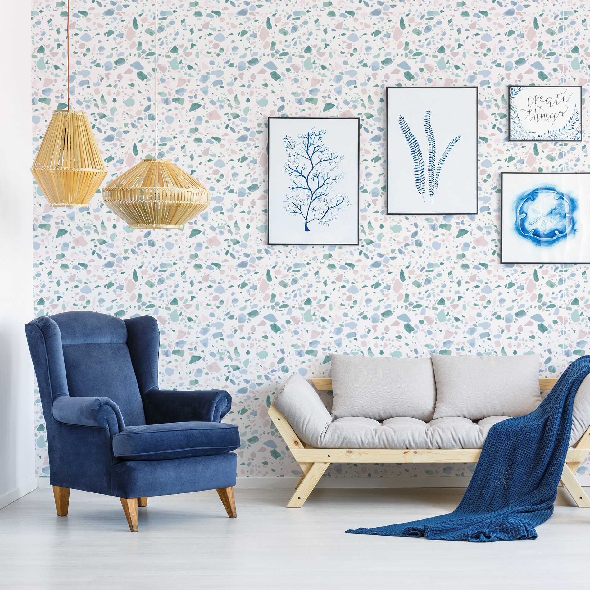 Vantagens do Papel de Parede Azul Claro Quarto e Sala Terrazzo
