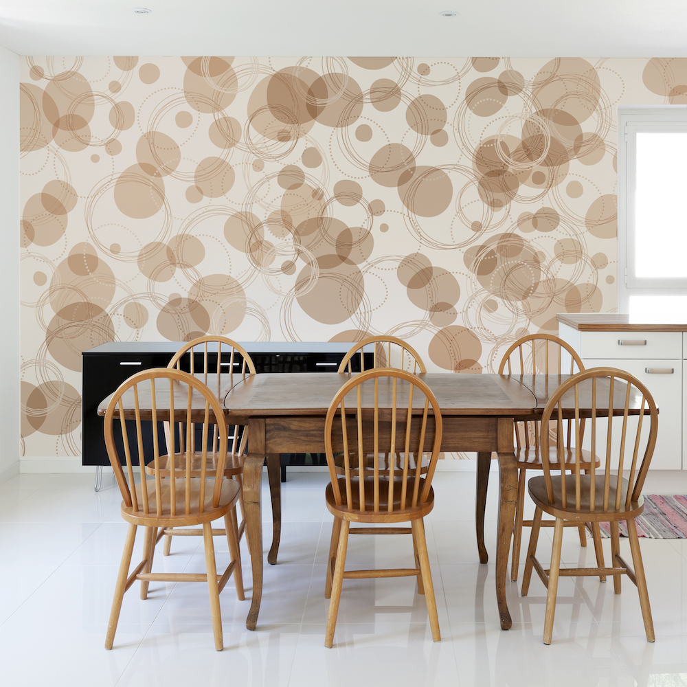 Papel de Parede Bolinhas e Círculos Tons Terrosos Painel cobre 9m²