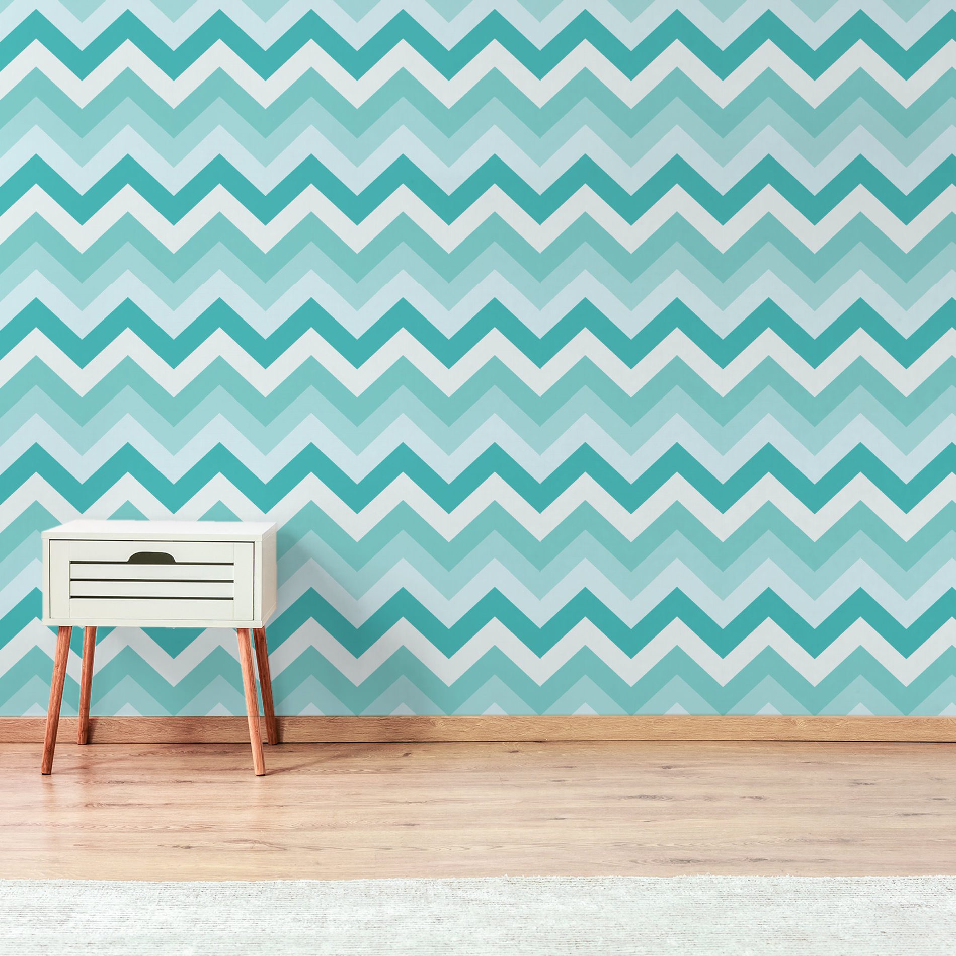 Vantagens do Papel de Parede Chevron Geométrico Tons de Tiffany