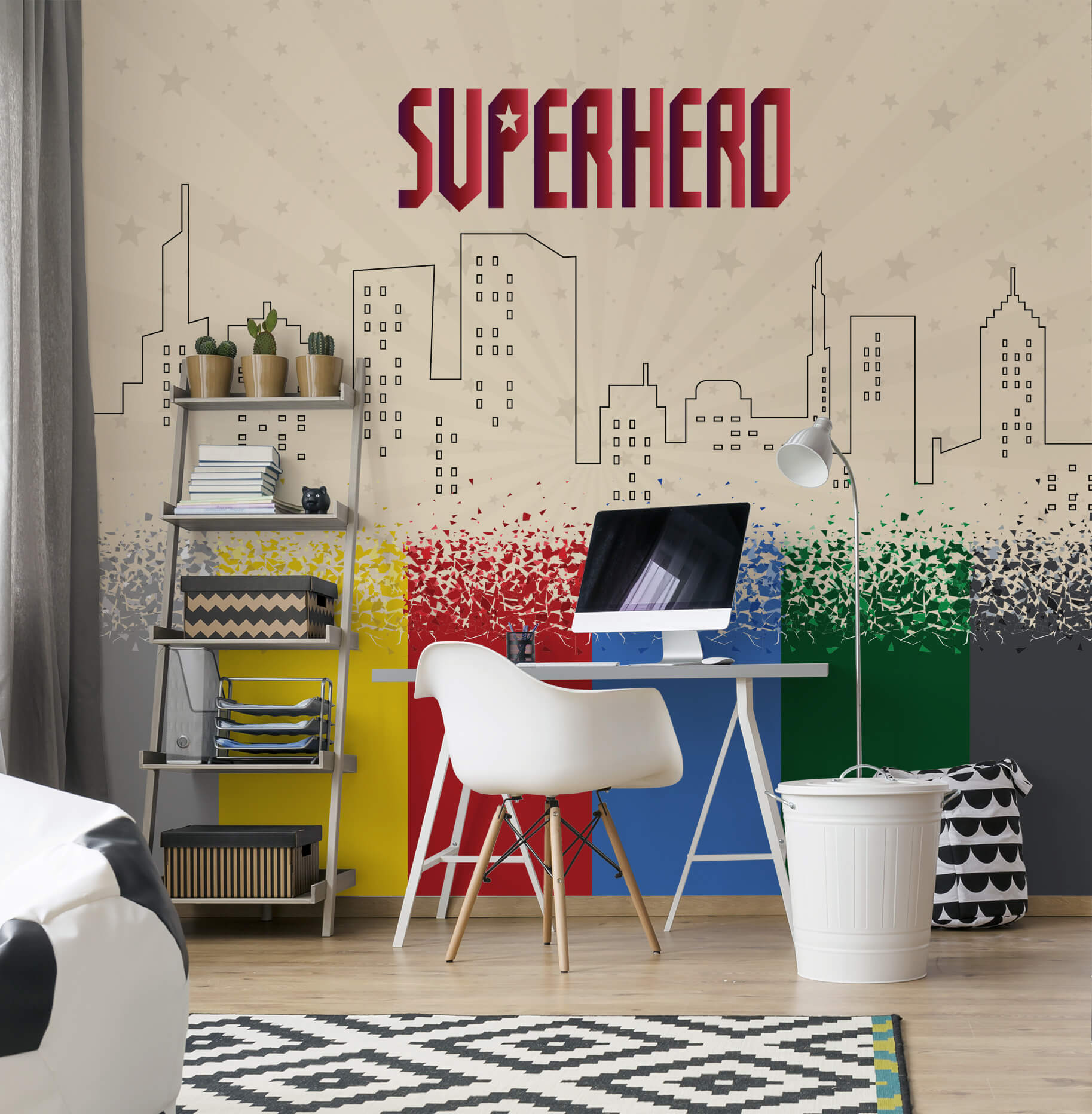 Tudo o que você precisa saber sobre Papel de Parede Colorido Infantil Super Herói Cidade 9m²