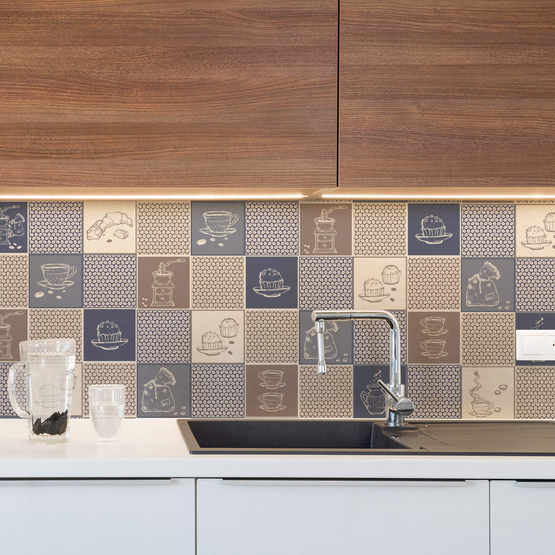 Papel de Parede Cozinha Azulejo Adesivo Café Rolo 57x270cm
