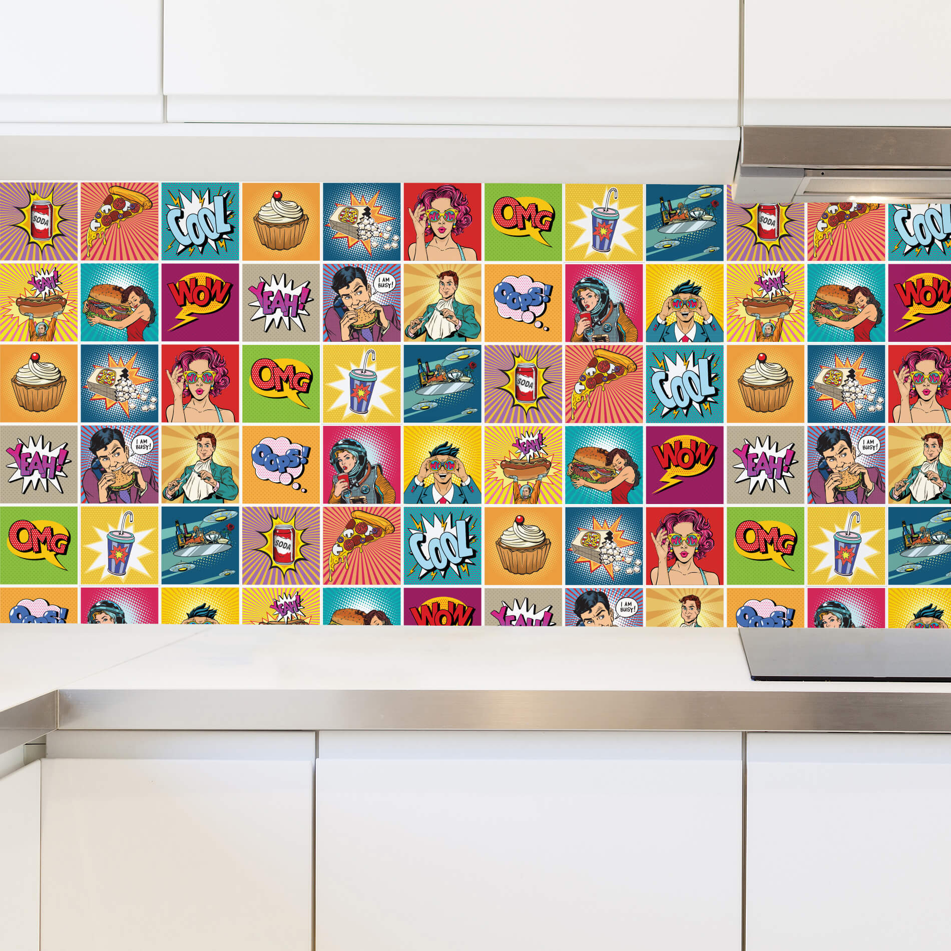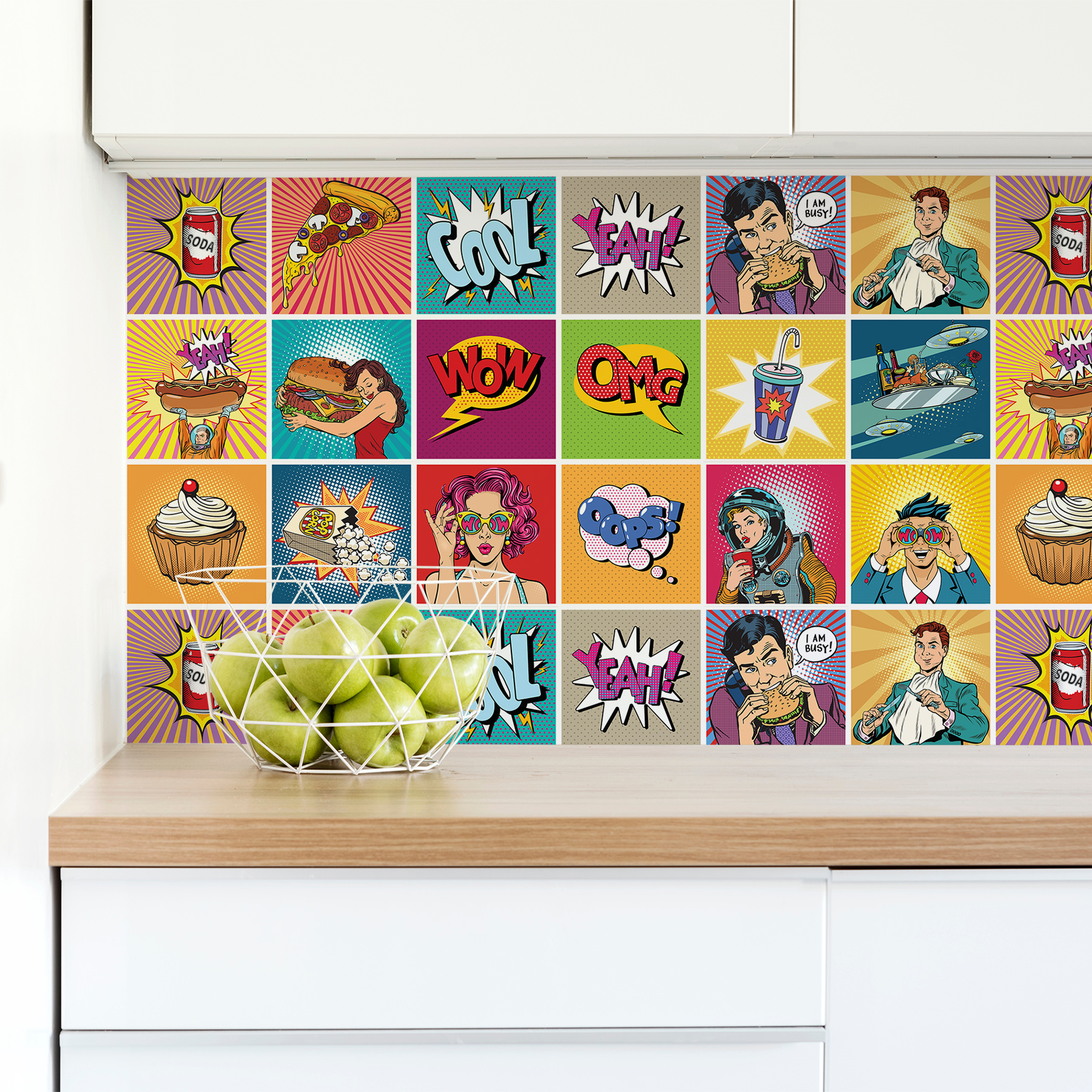 Papel de Parede Cozinha Azulejo Pop Art Comida Rolo 57x270cm