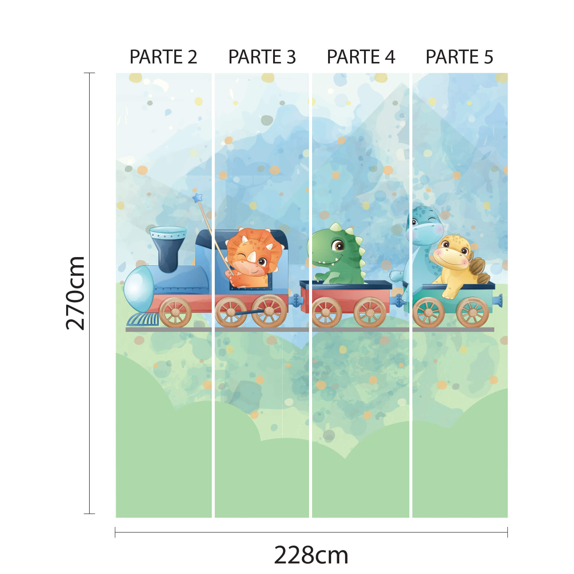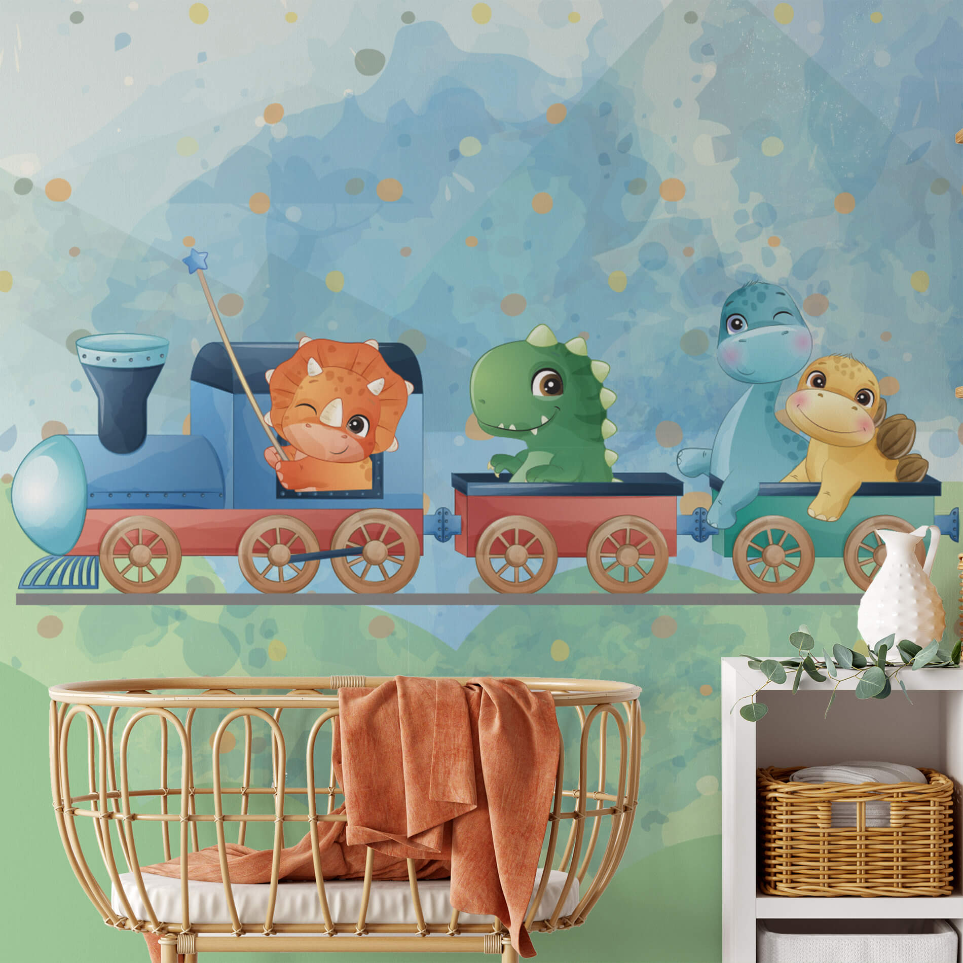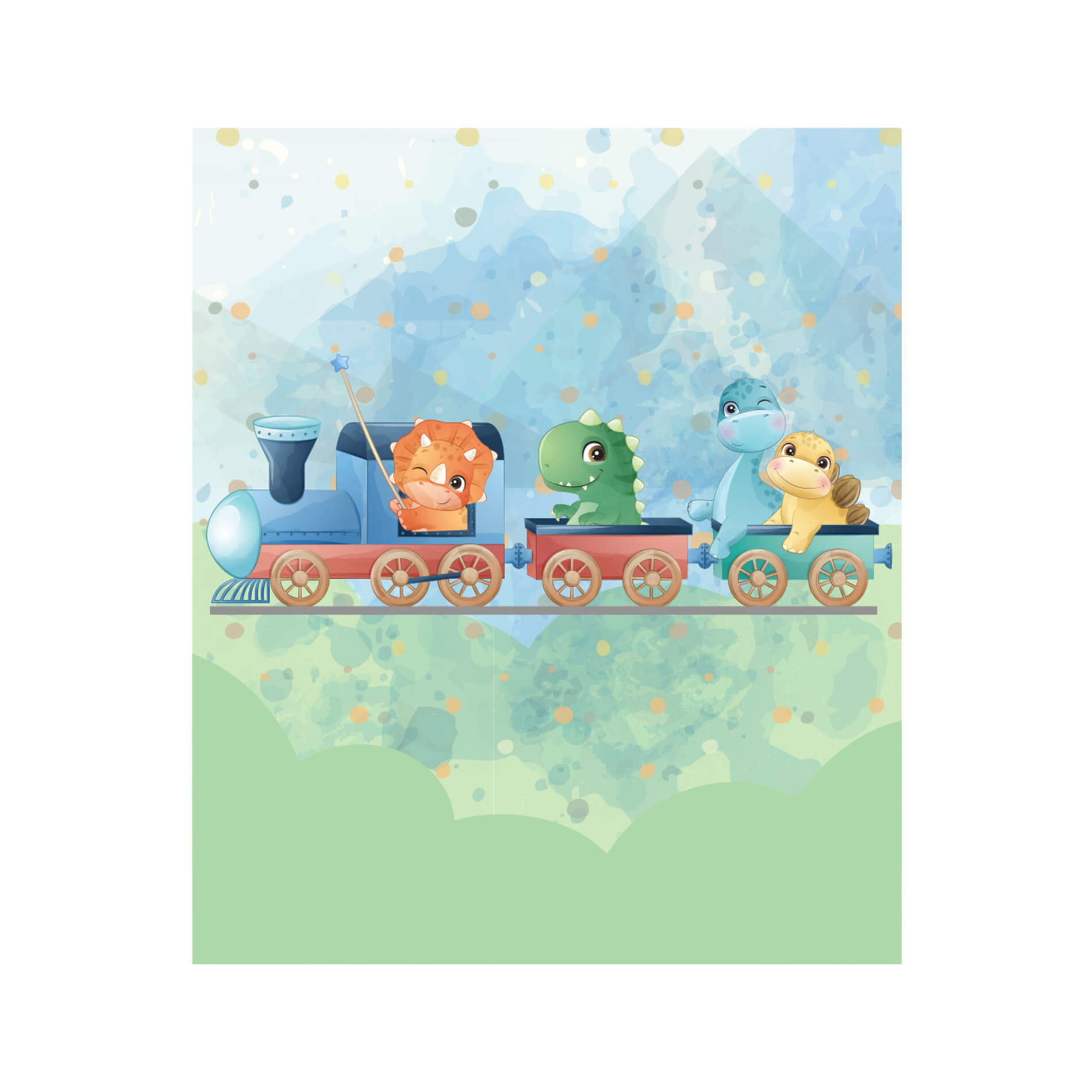 Papel de Parede Dinossauro Trenzinho Infantil Aquarela 6m²: