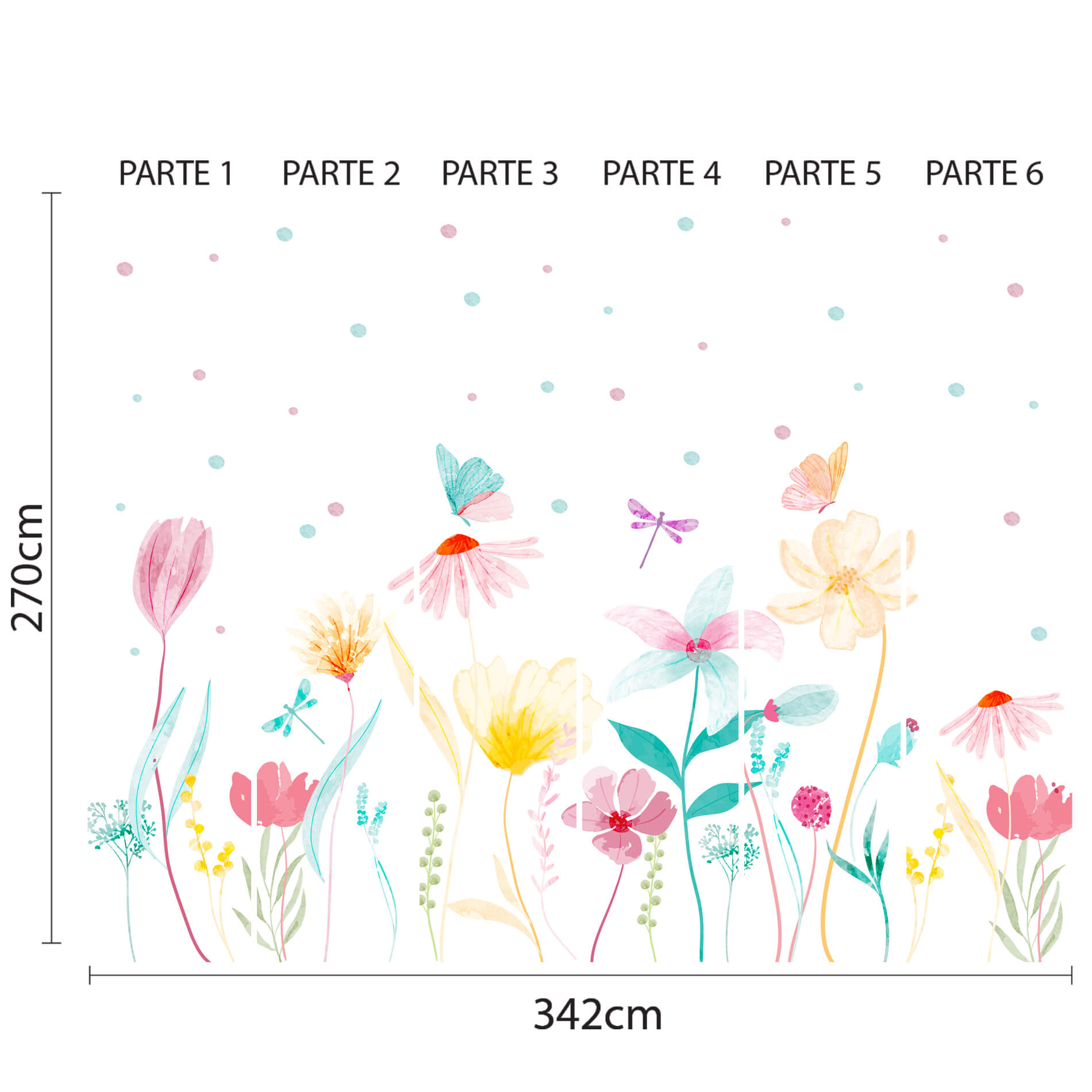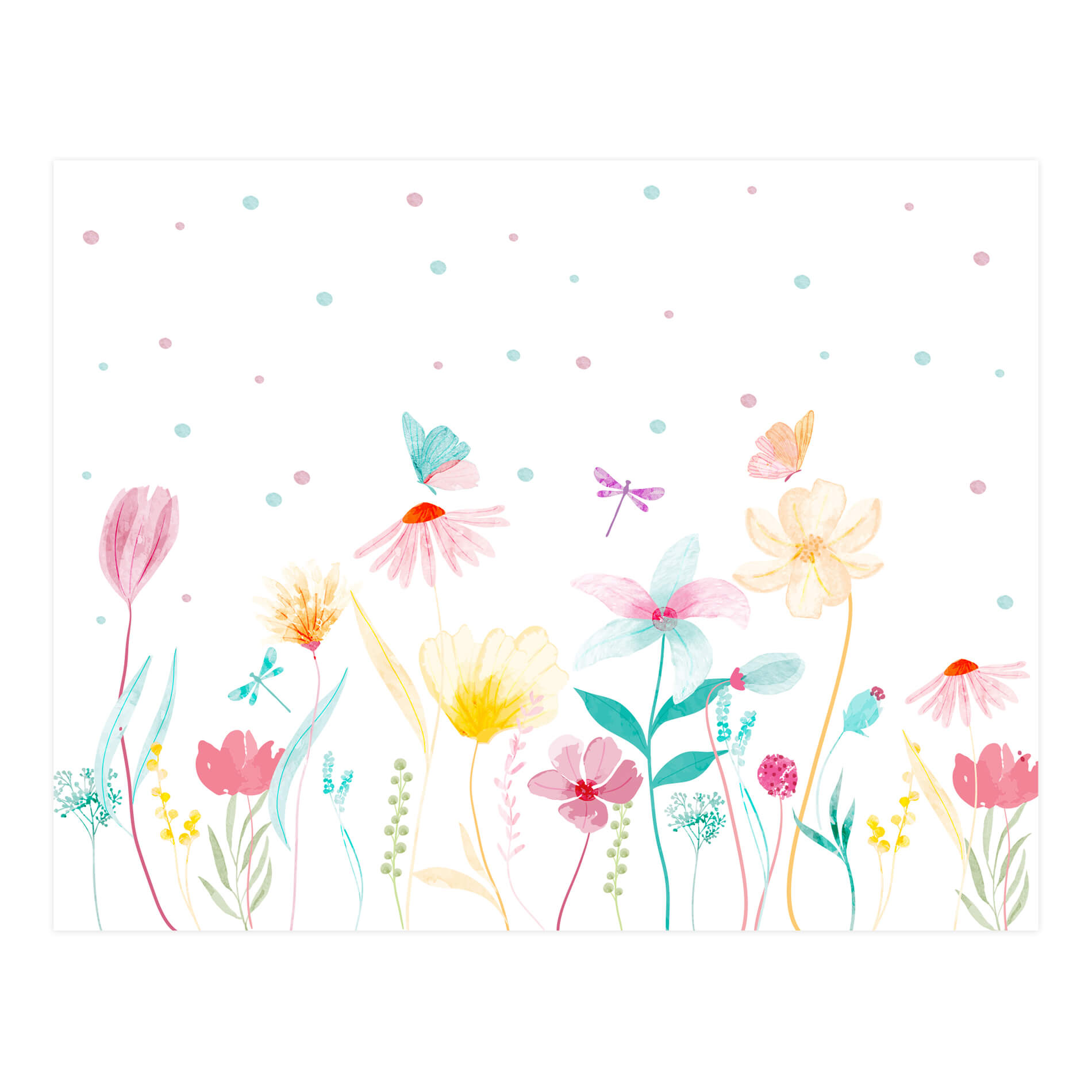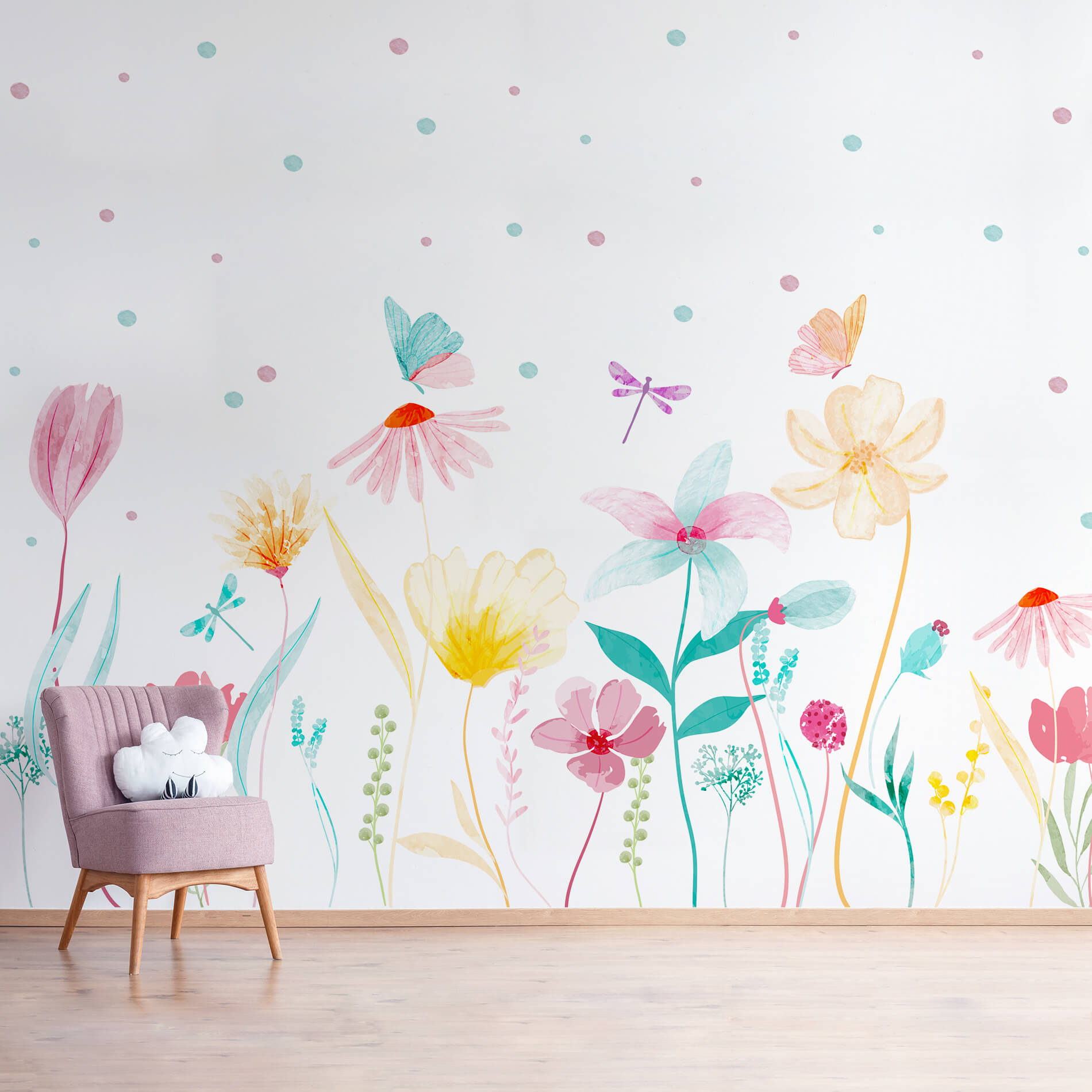 - Design floral em aquarela com cores suaves, ideal para quartos infantis e delicados.