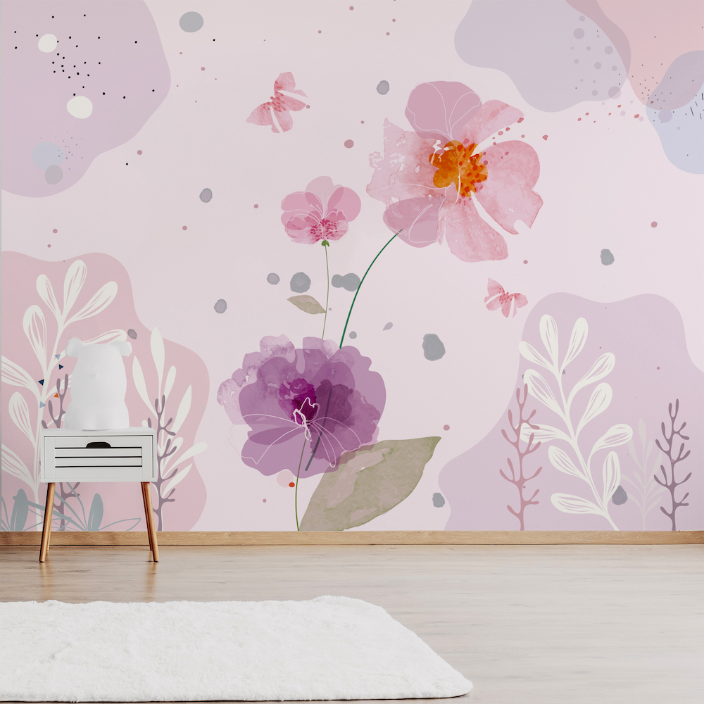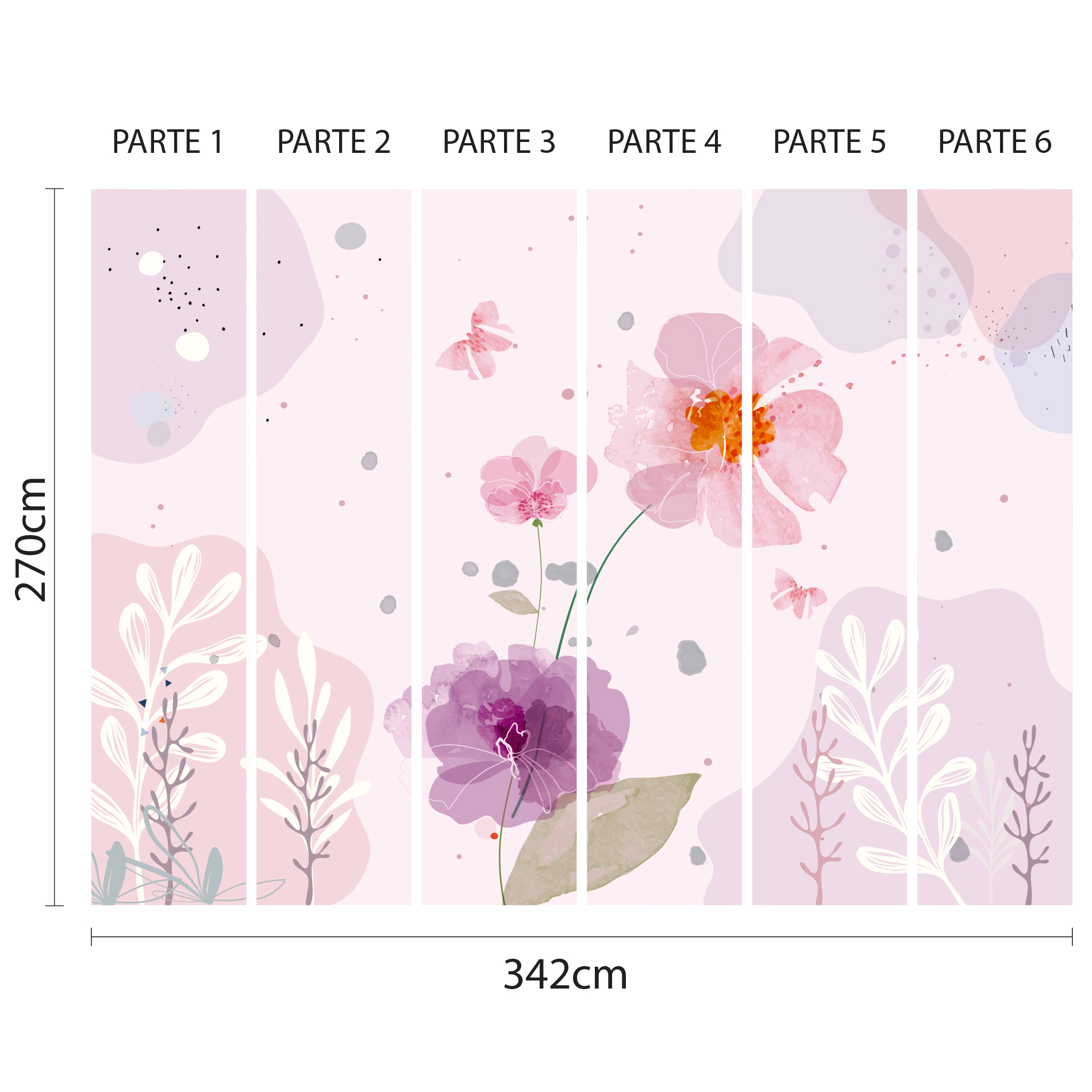 Papel de Parede Floral Tons Rosa Aquarela Boho Botânico 9m²