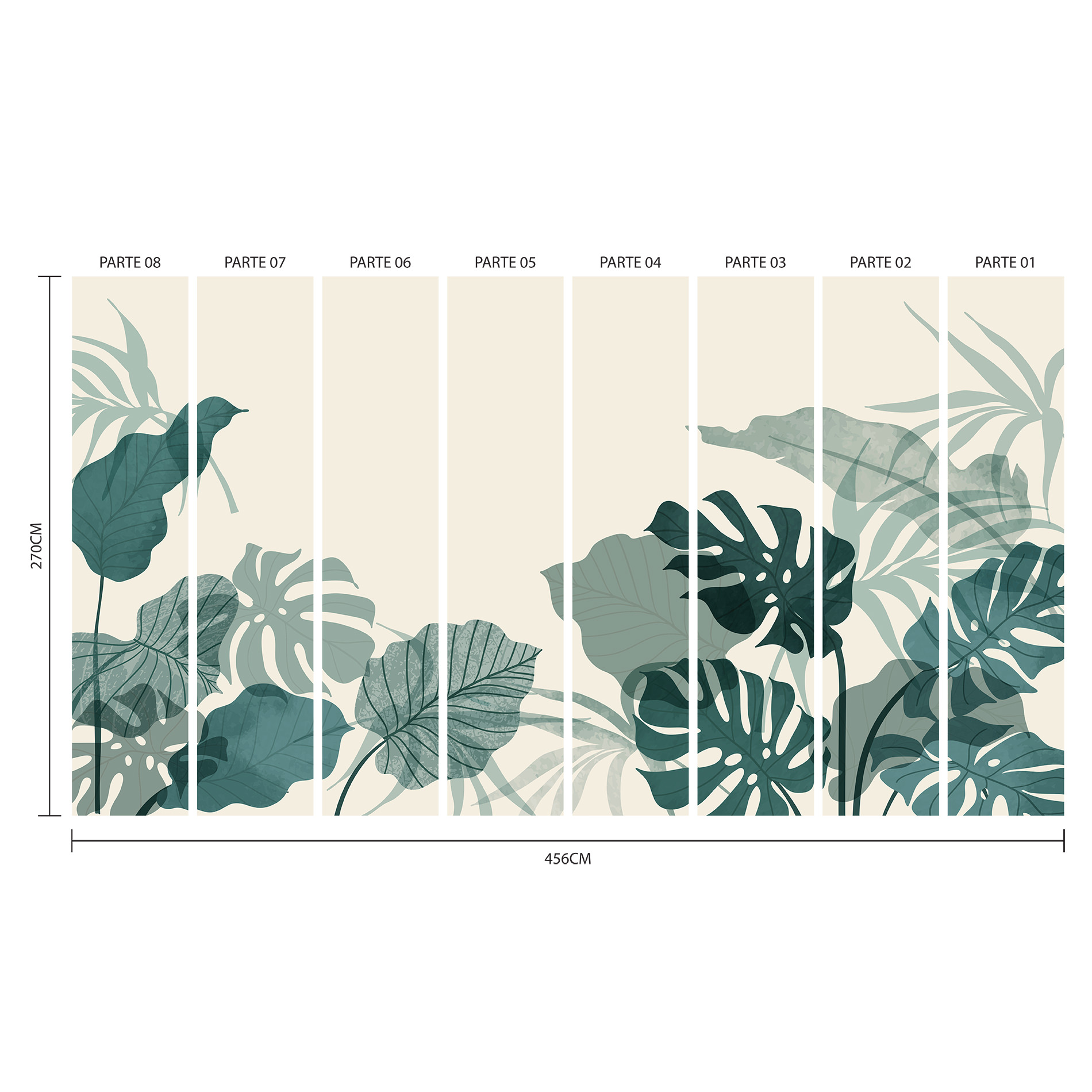 Papel de Parede Folhagem Folhas Verde Plantas Painel 12m²