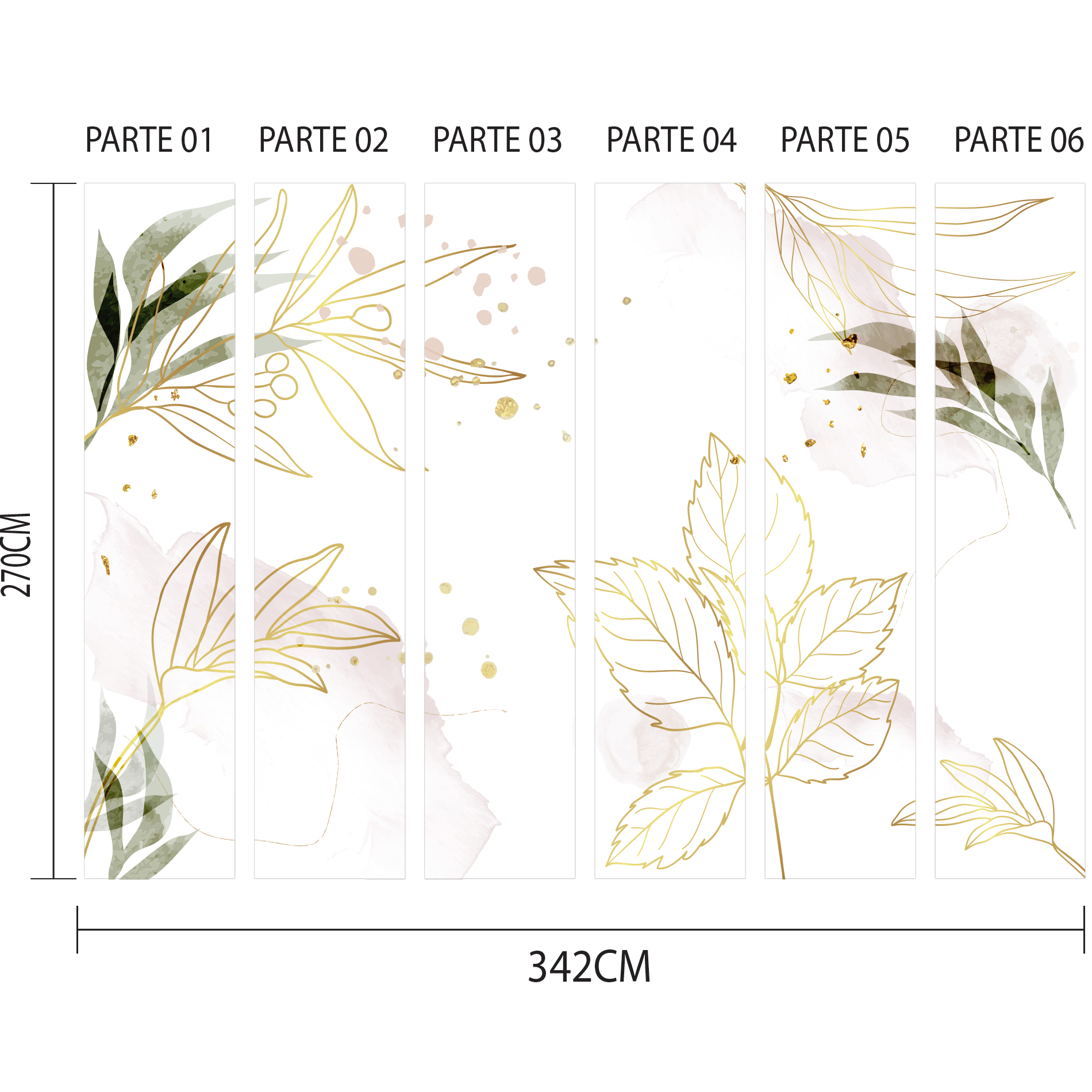 Papel de Parede Folhagem Plantas Dourado e Verde cobre 9m²