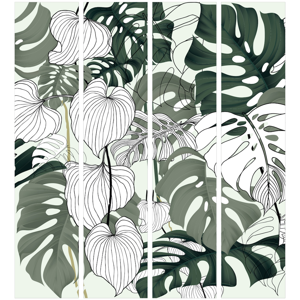 - Estampa de folhagem em tons verdes que traz um toque natural e moderno ao ambiente.