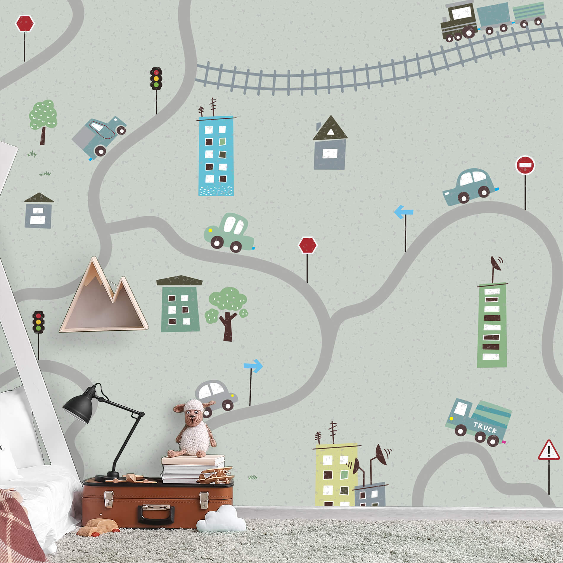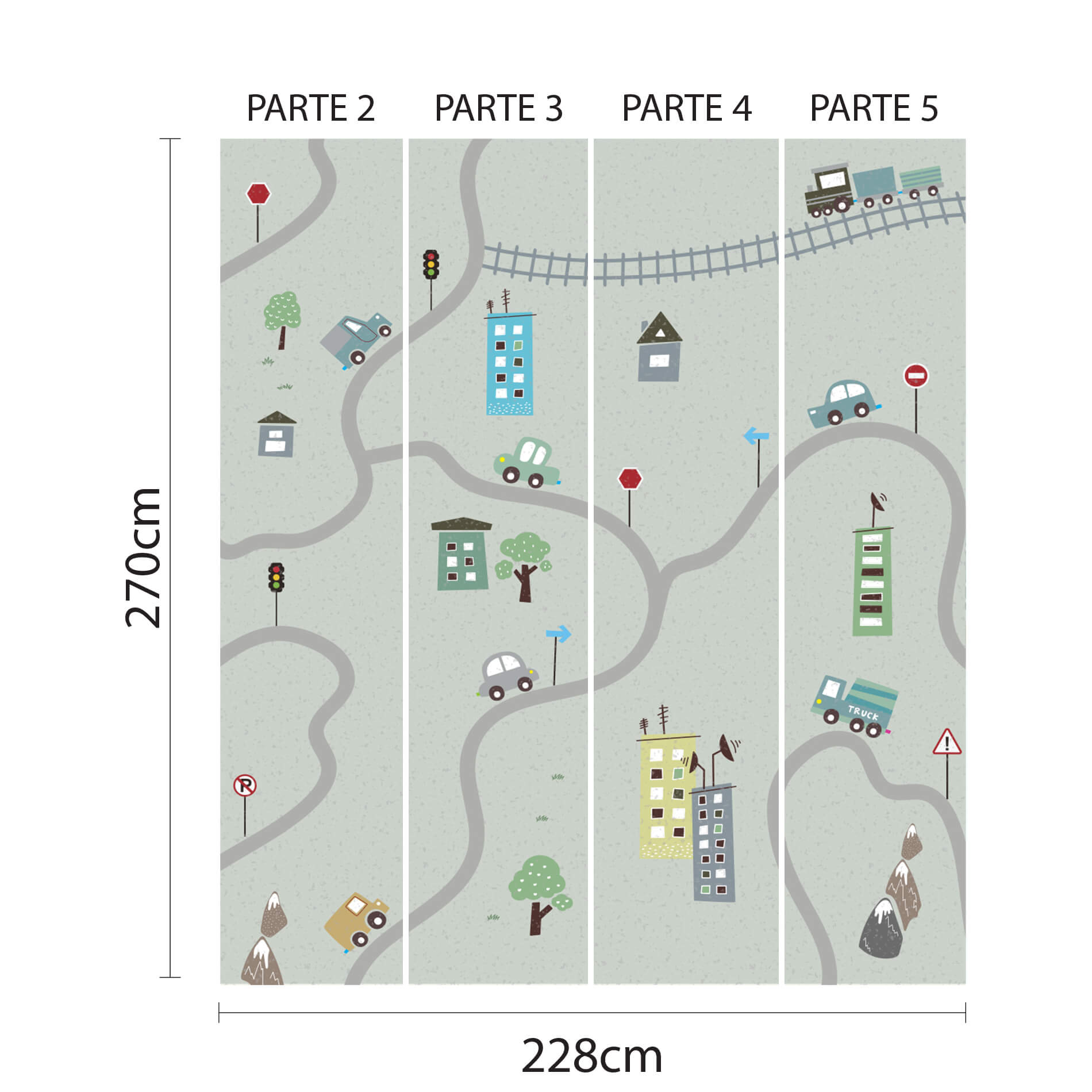 Papel de Parede Infantil Carrinhos na Rua Painel 6m²:
