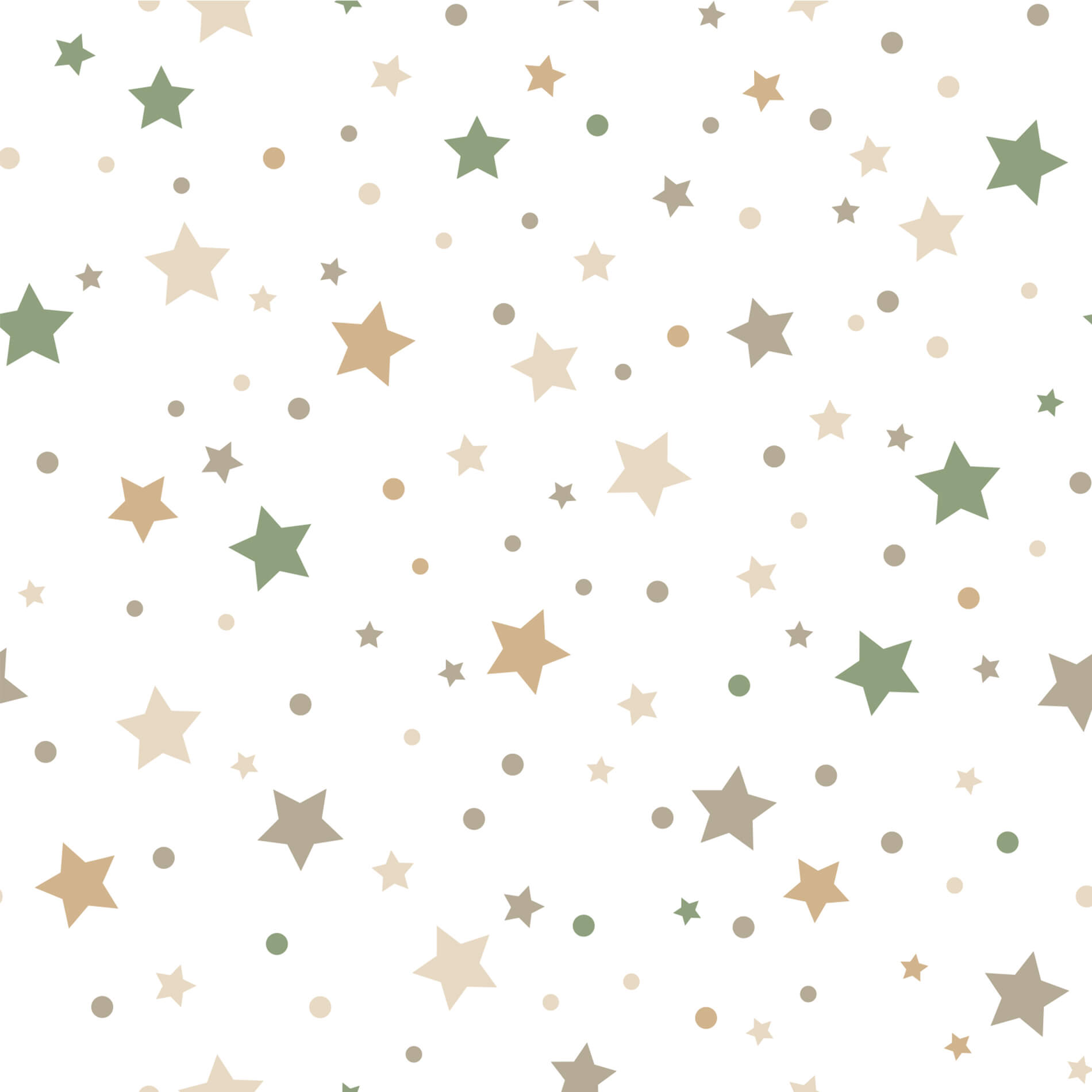 Características do Papel de Parede Infantil Estrelinhas e Bolinhas Bege 57×270: