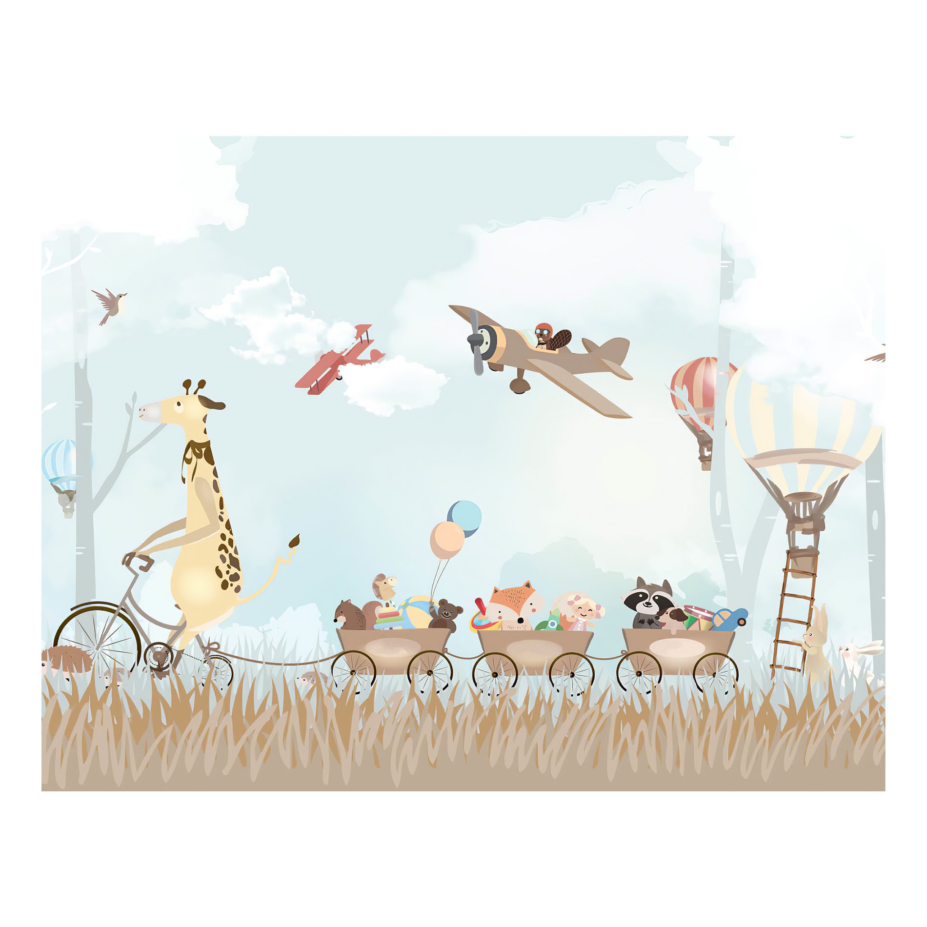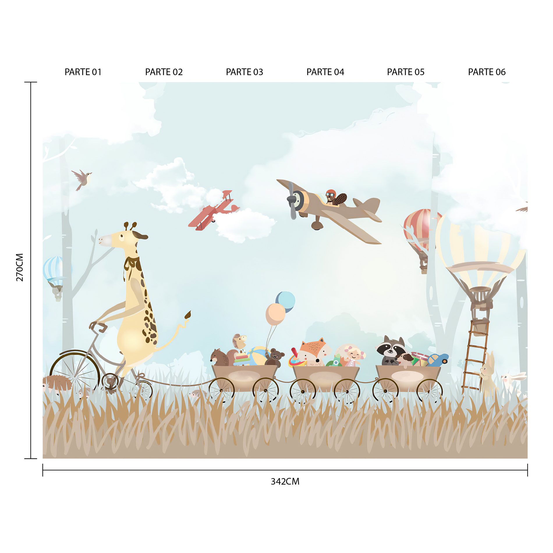 Papel de Parede Painel Animais Aviões e Balões 6 rolos – 9m²