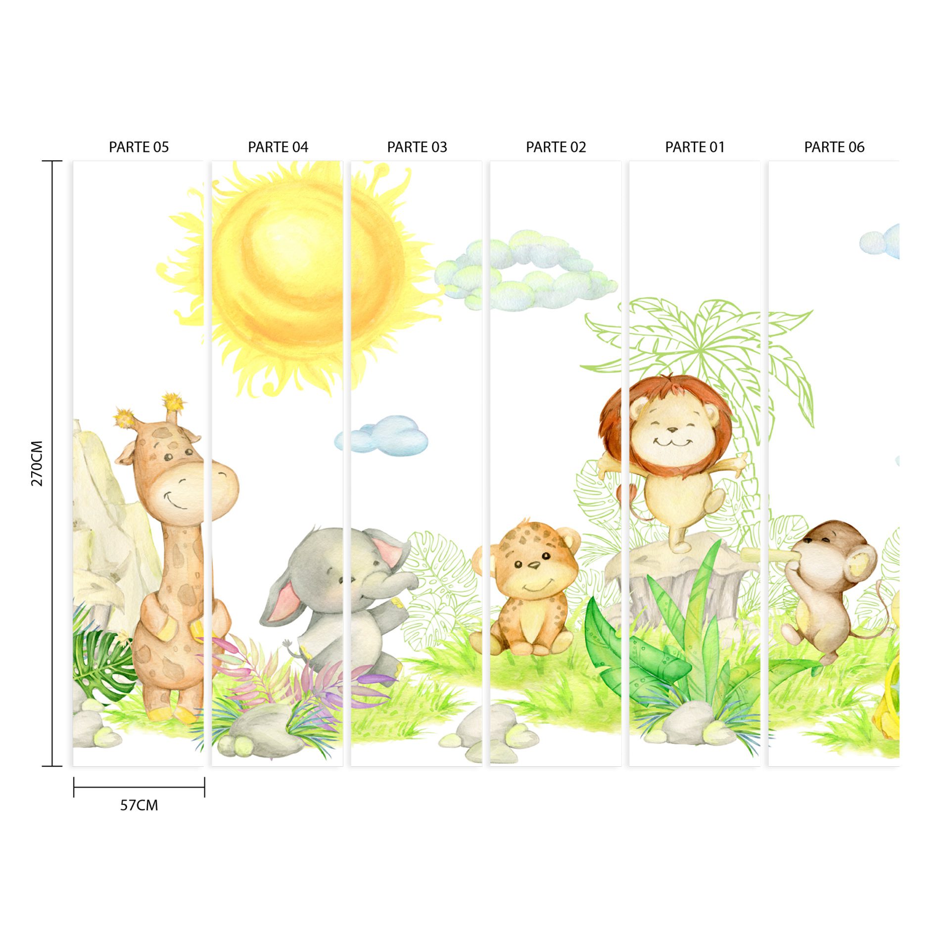 Papel de Parede Infantil Painel Animais Safari 6 rolos 9m²