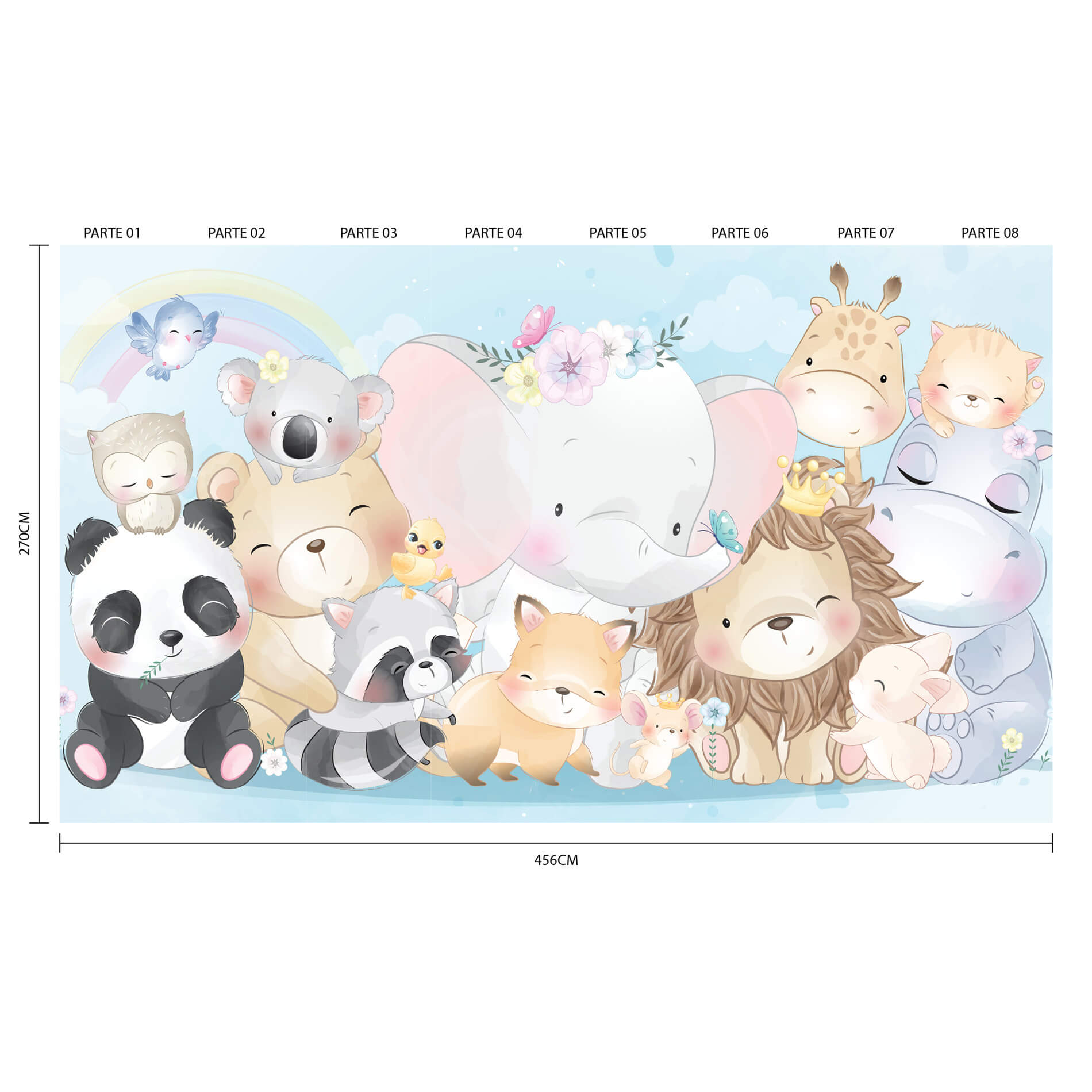 Papel de Parede Painel Animais Zoo Aquarela 8 rolos – 12m²
