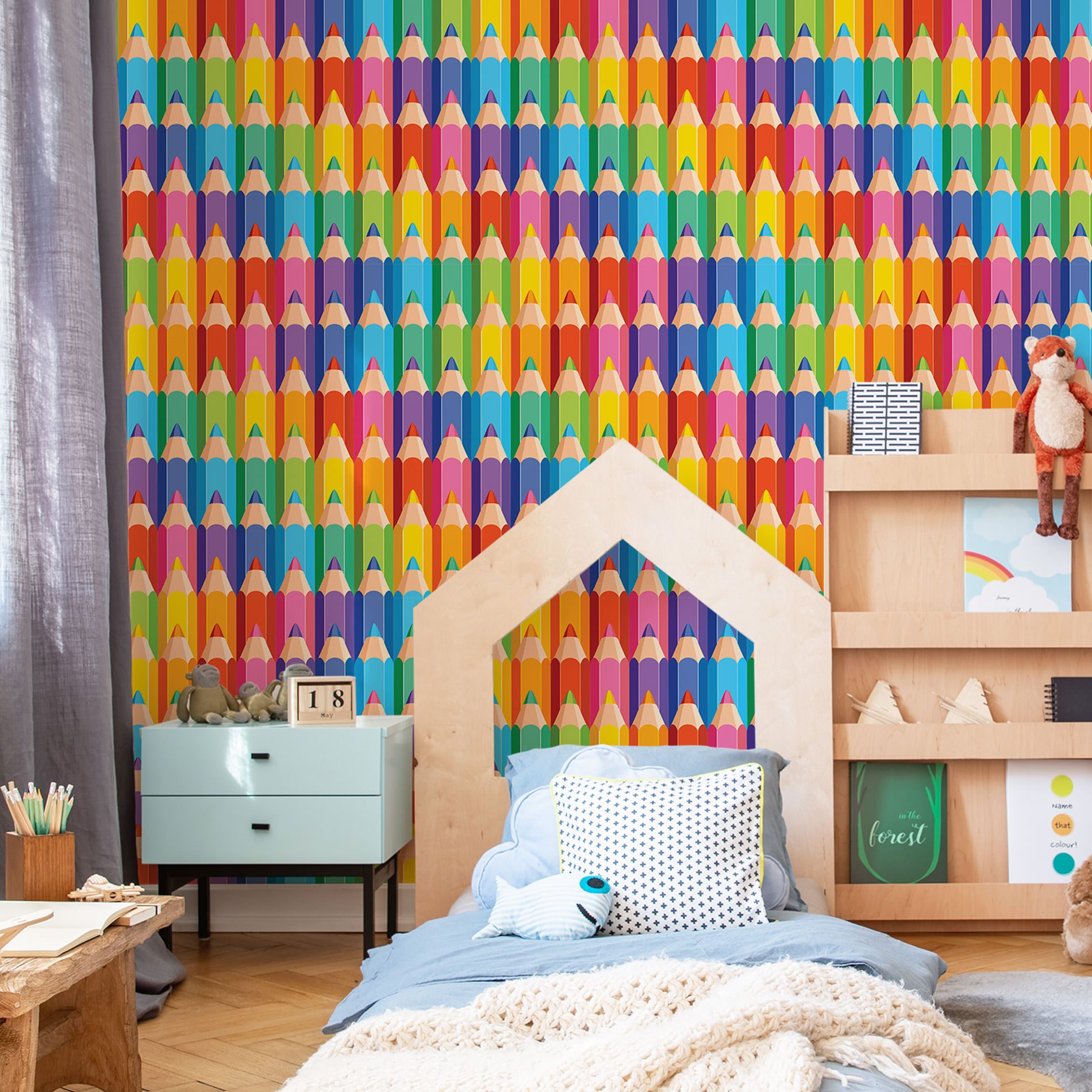 Dimensões e Características do Papel de Parede Lápis de Cor Arco-Iris rolo 57x270cm