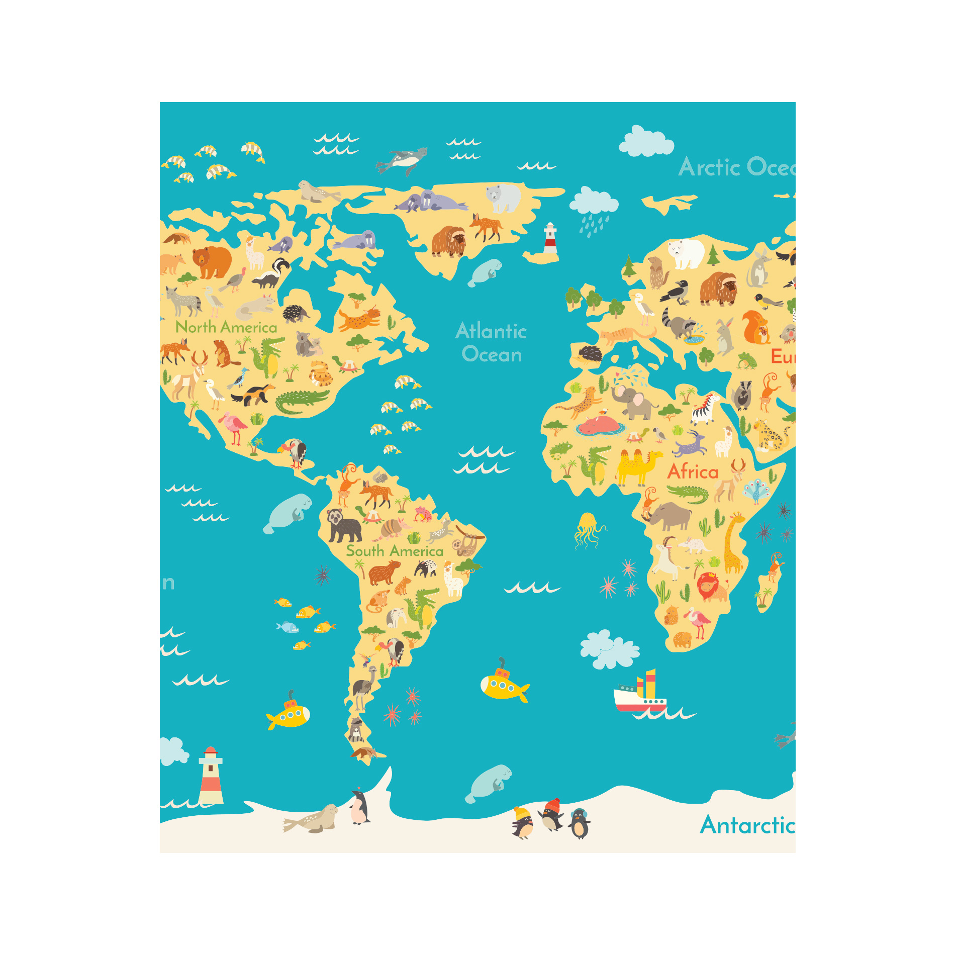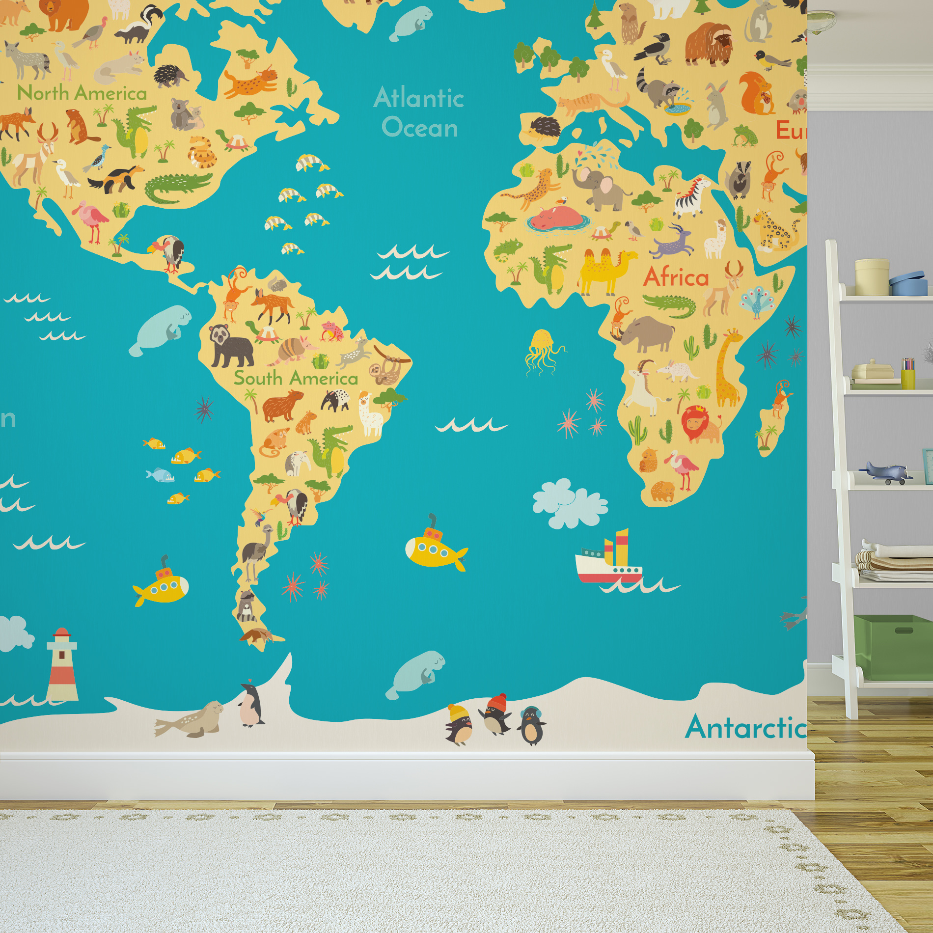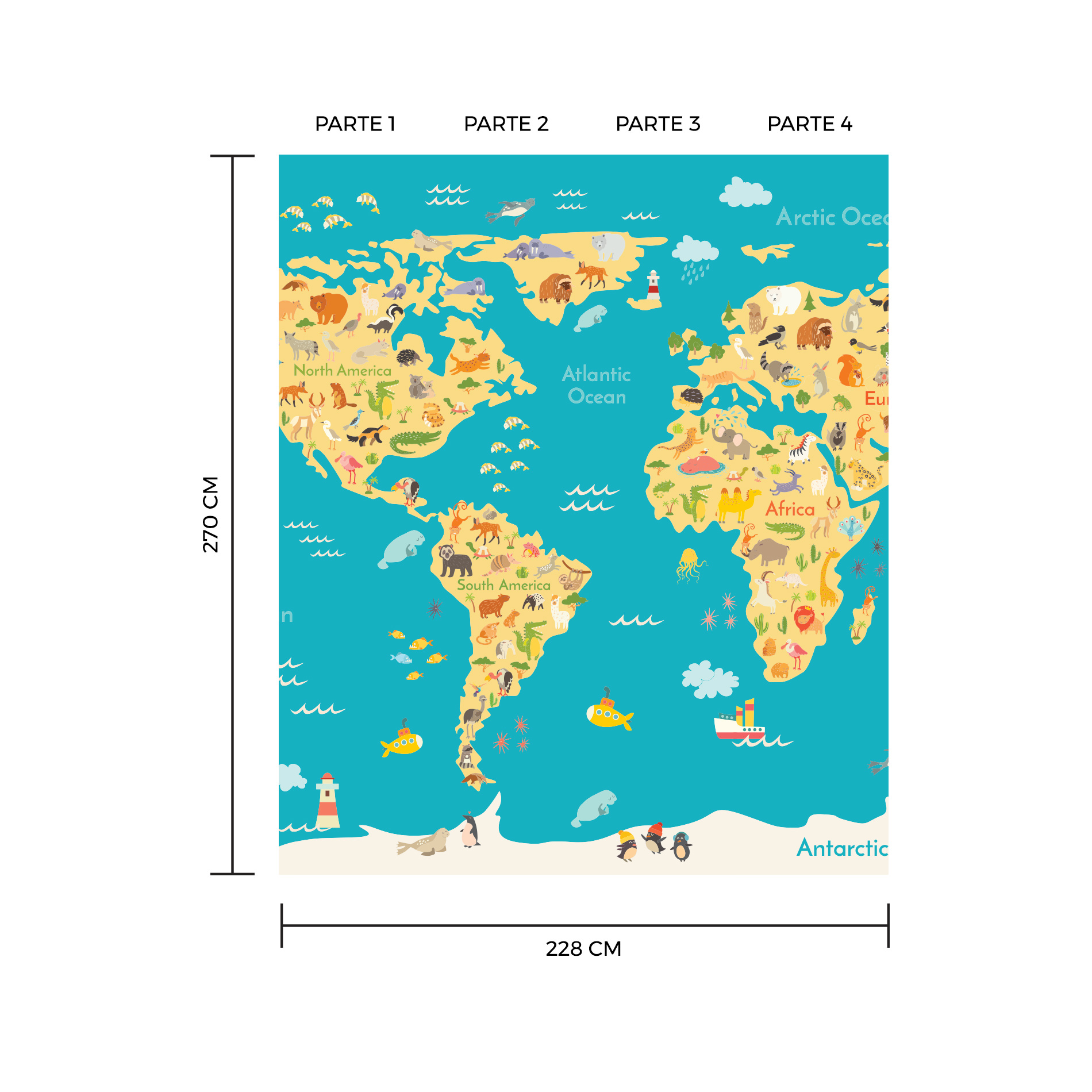 Papel de Parede Mapa Mundi Painel Infantil Vinílico 4 rolos 6m²