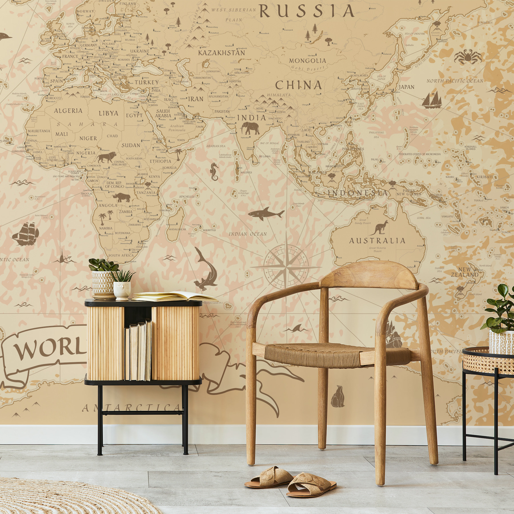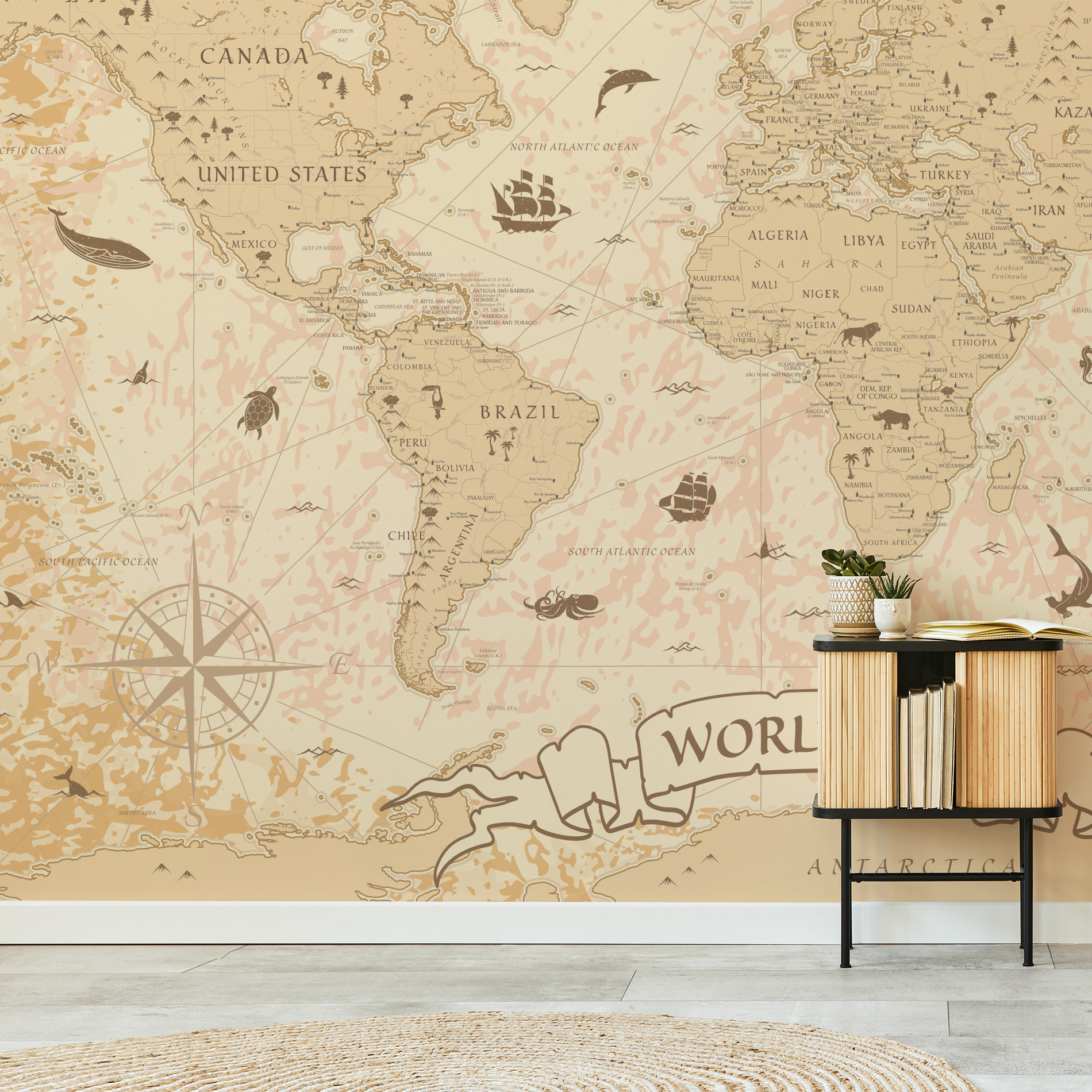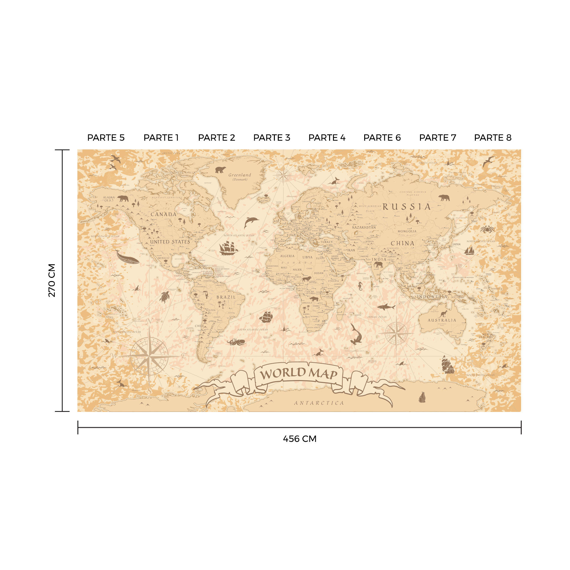 Papel de Parede Mapa Mundi Vintage Painel Vinil 8 rolos 12m²