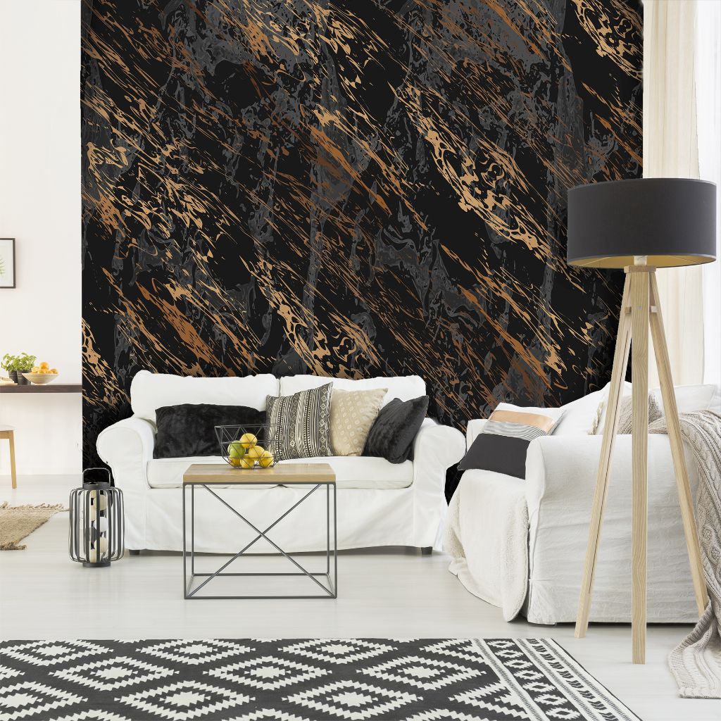 Papel de Parede Mármore Preto e Dourado Sala Quarto cobre 9m²