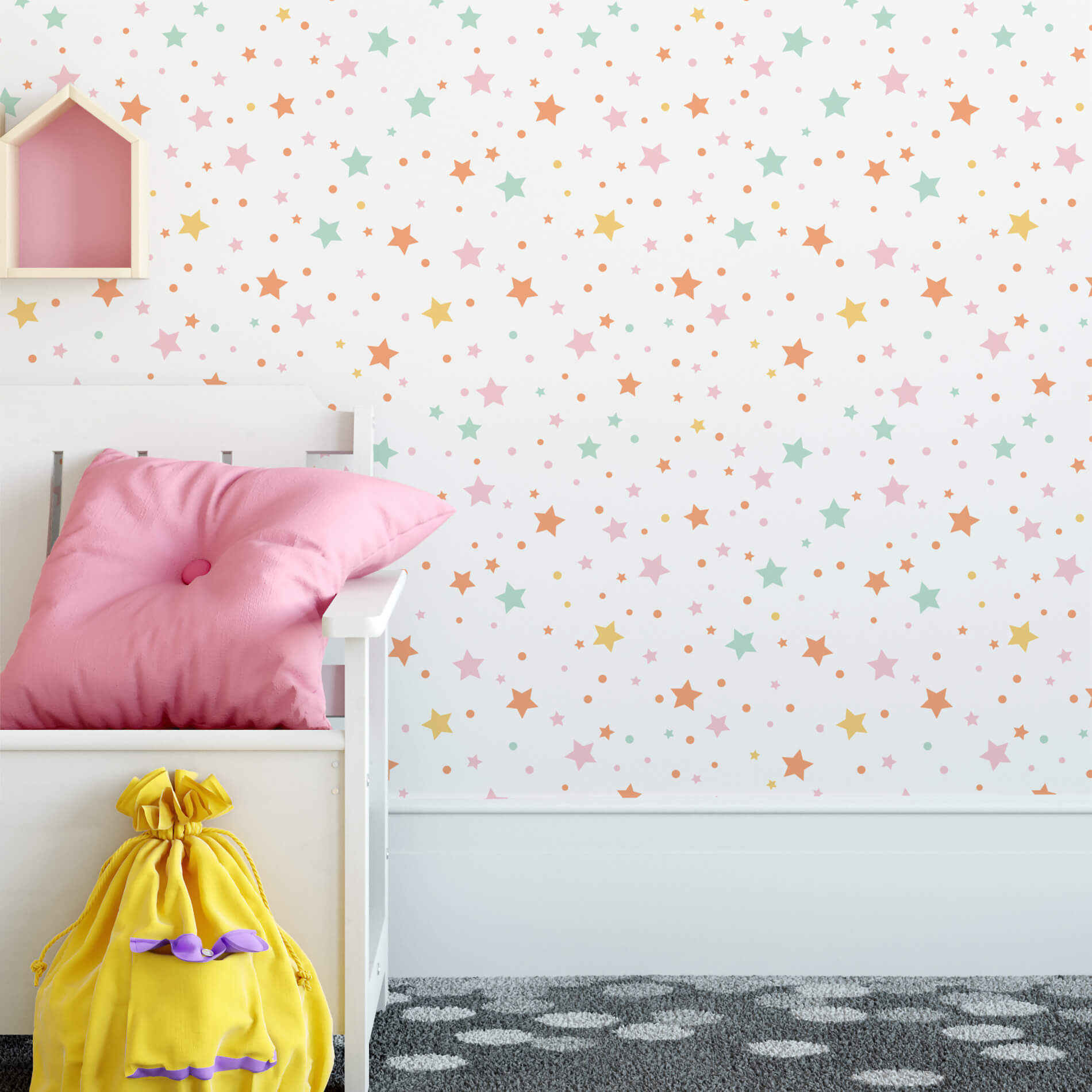 Características do Papel de Parede Menina Estrelinhas e Bolinhas Por do Sol: