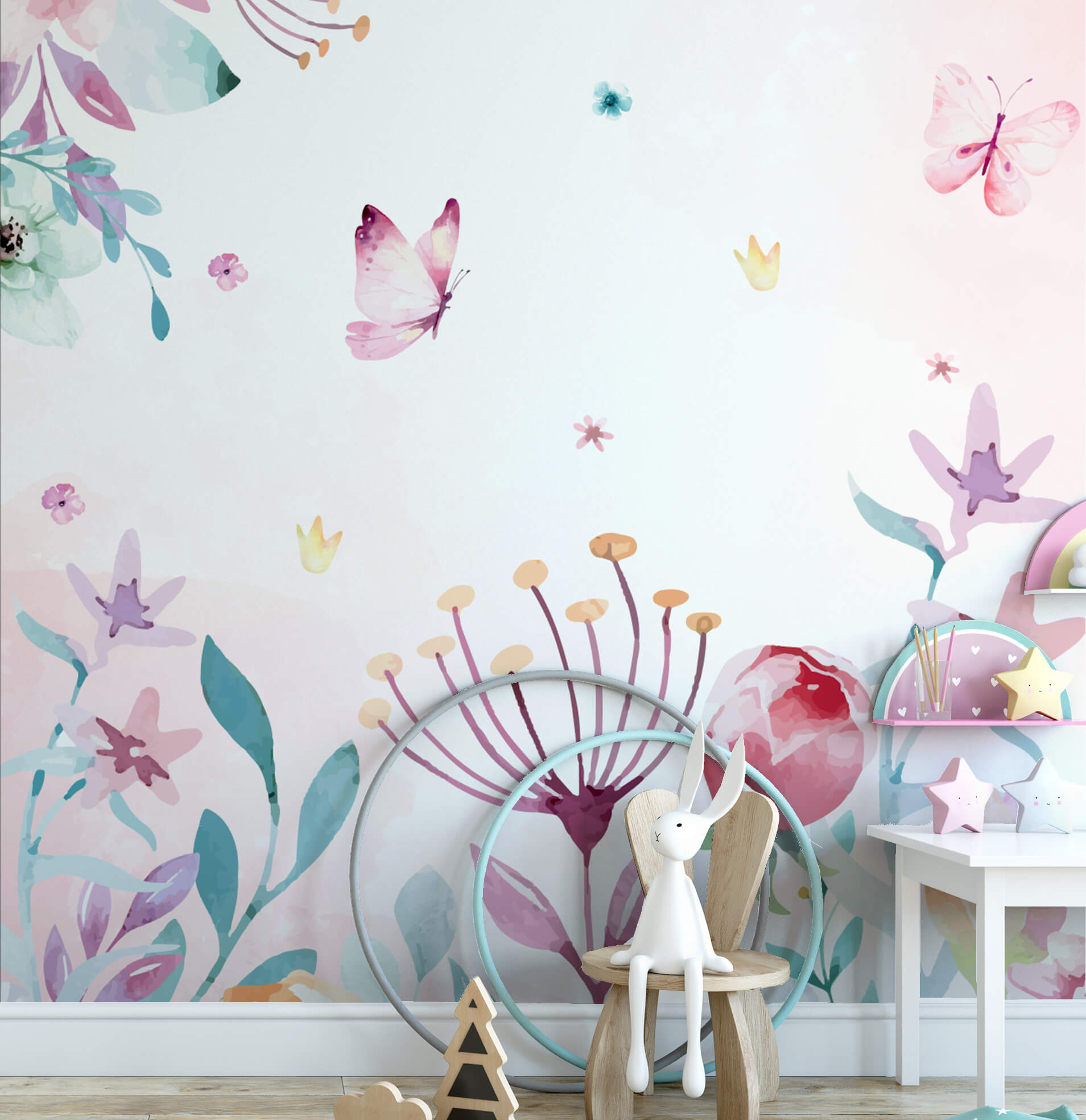 - Design floral aquarelado que cria ambiente delicado e acolhedor para quartos infantis.