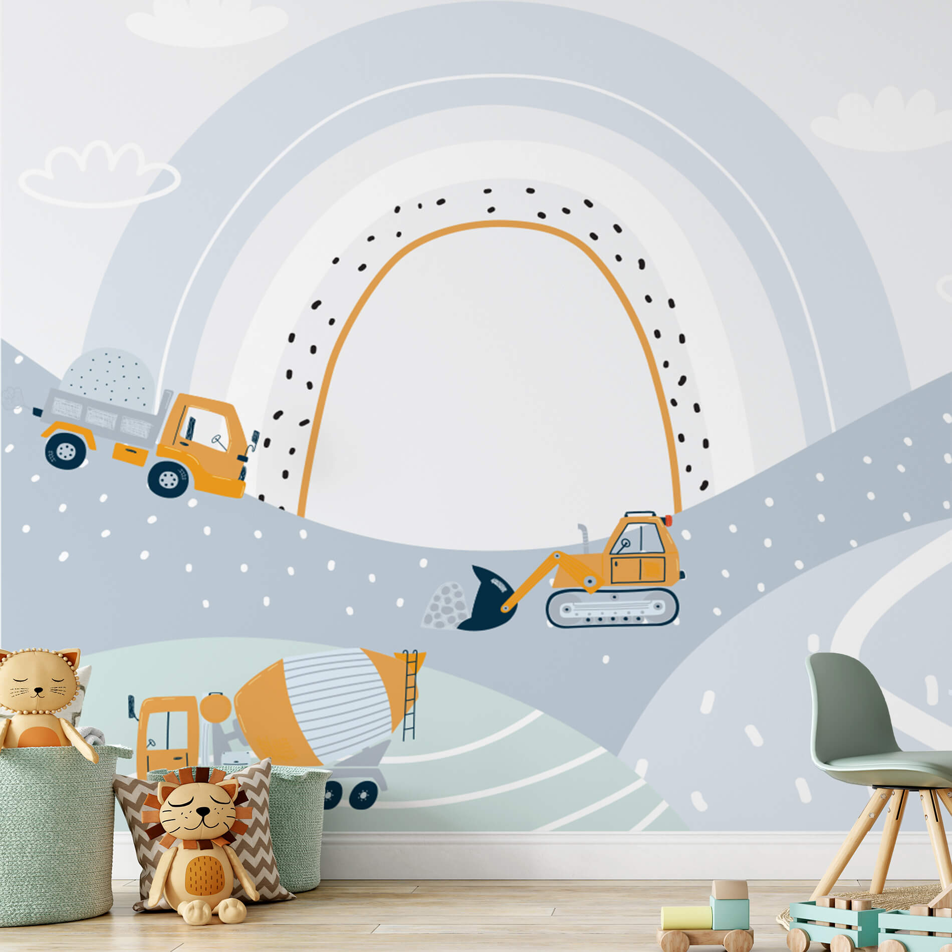 Tudo o que você precisa saber sobre Papel de Parede Menino Caminhões Campo de Construção 6m²