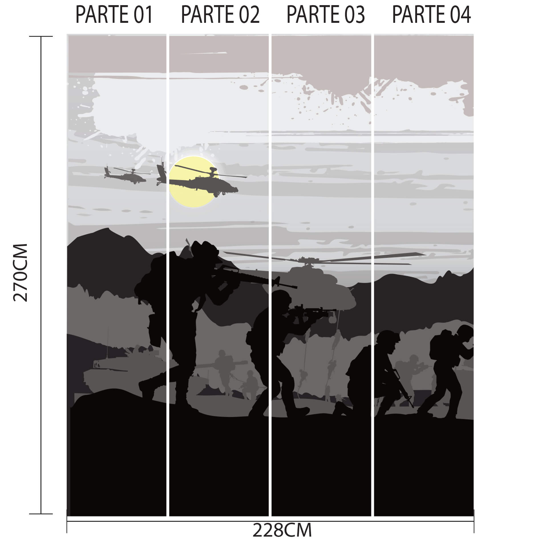 Tudo o que você precisa saber sobre Papel de Parede Menino Exército e Helicóptero Painel 6m²