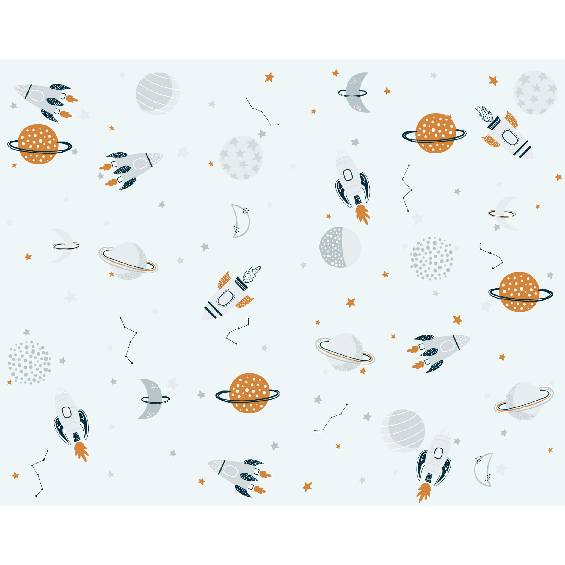 • Tipo de produto: Papel de parede adesivo com tema de foguetes e planetas, ideal para quartos infantis.