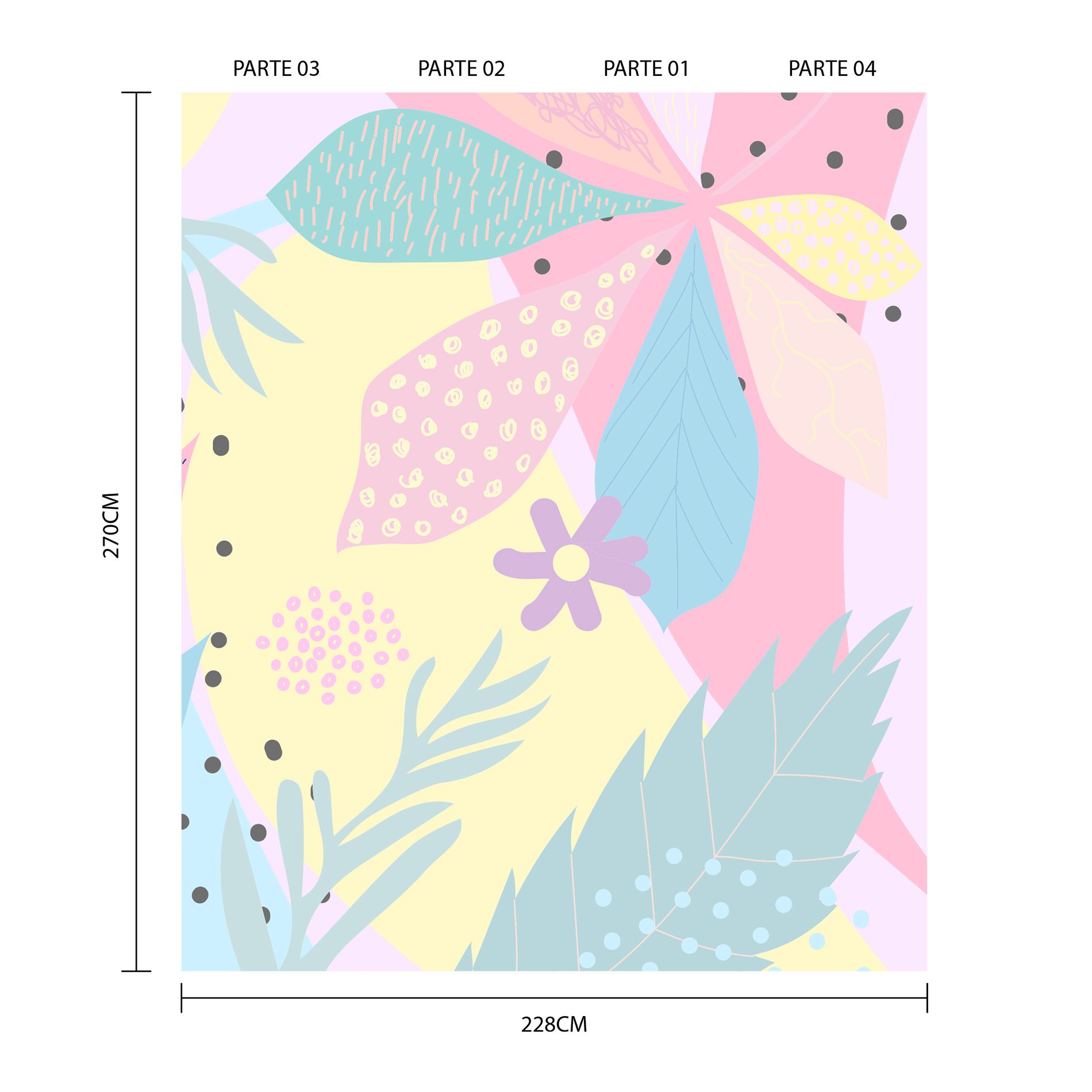 Papel de Parede Painel Floral Tons Pastéis 4 rolos – 6m²