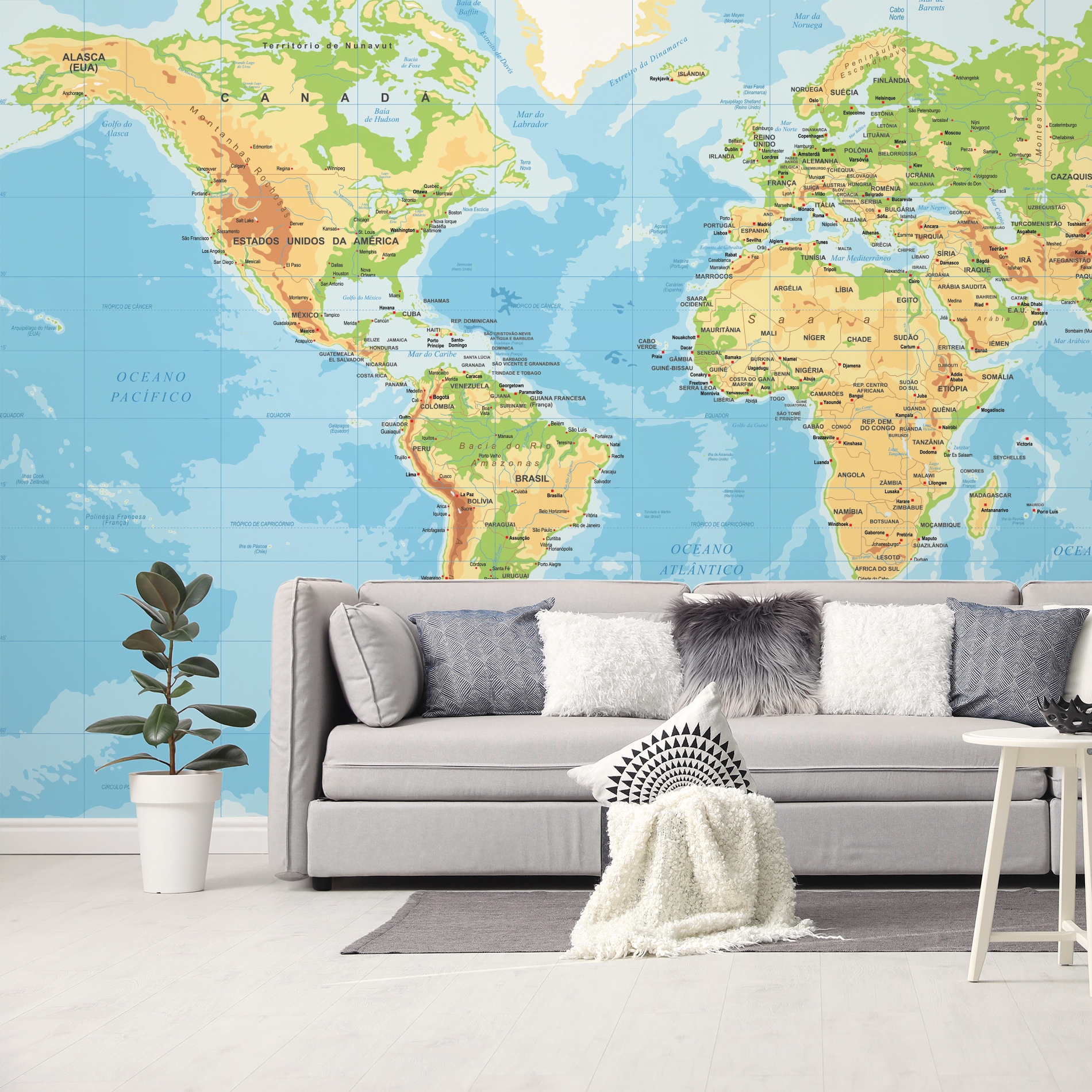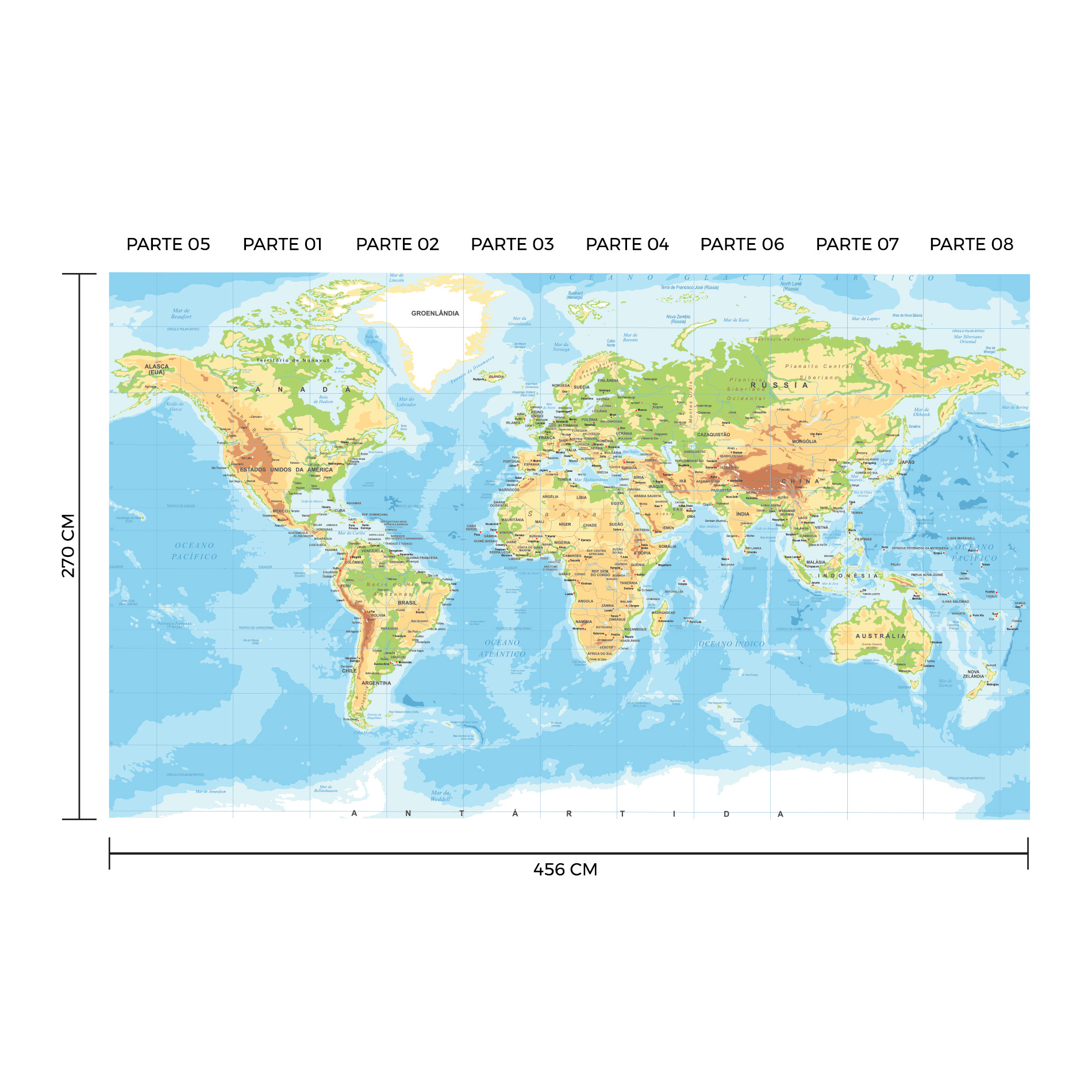 Papel de Parede Mapa Mundi Painel 8 rolos – 12m²