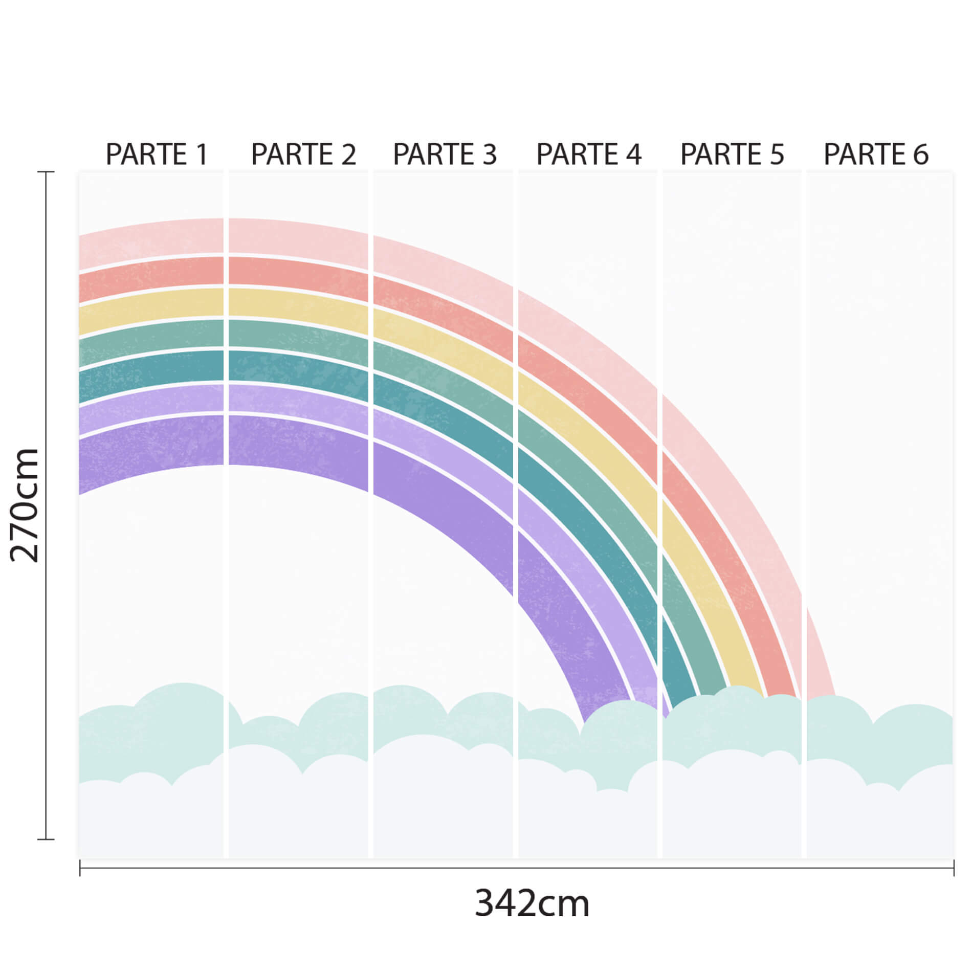 Papel de Parede para Quarto de Menina Arco-íris e Nuvens 9m²