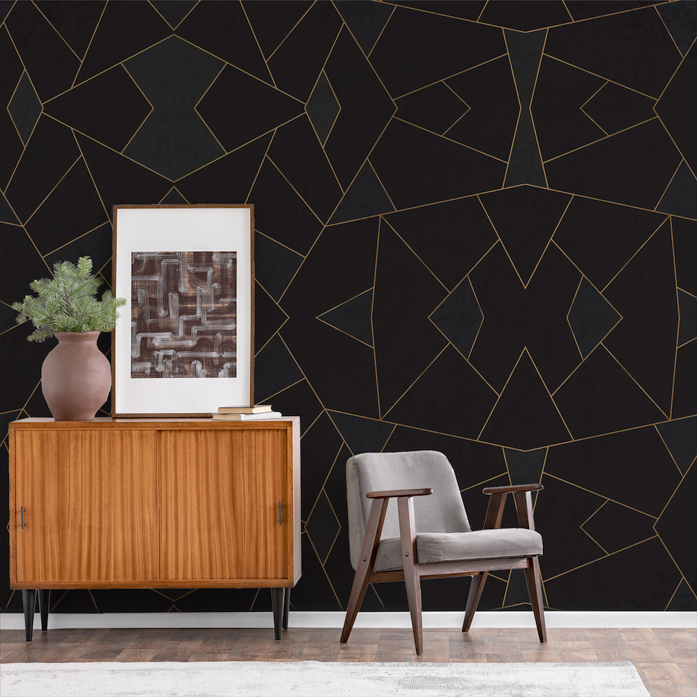 Papel de Parede Preto Geométrico Sala Quarto Banheiro cobre 6m²