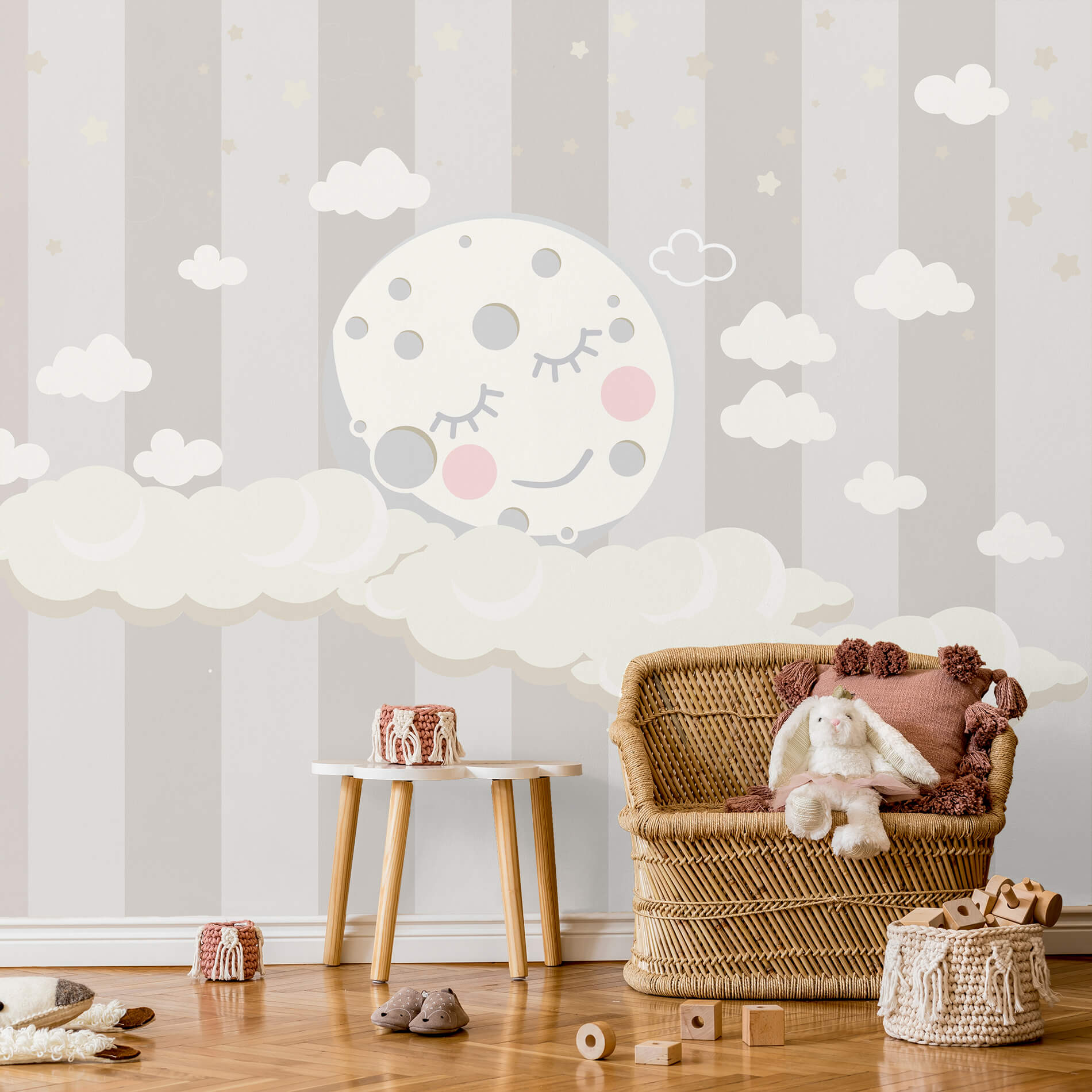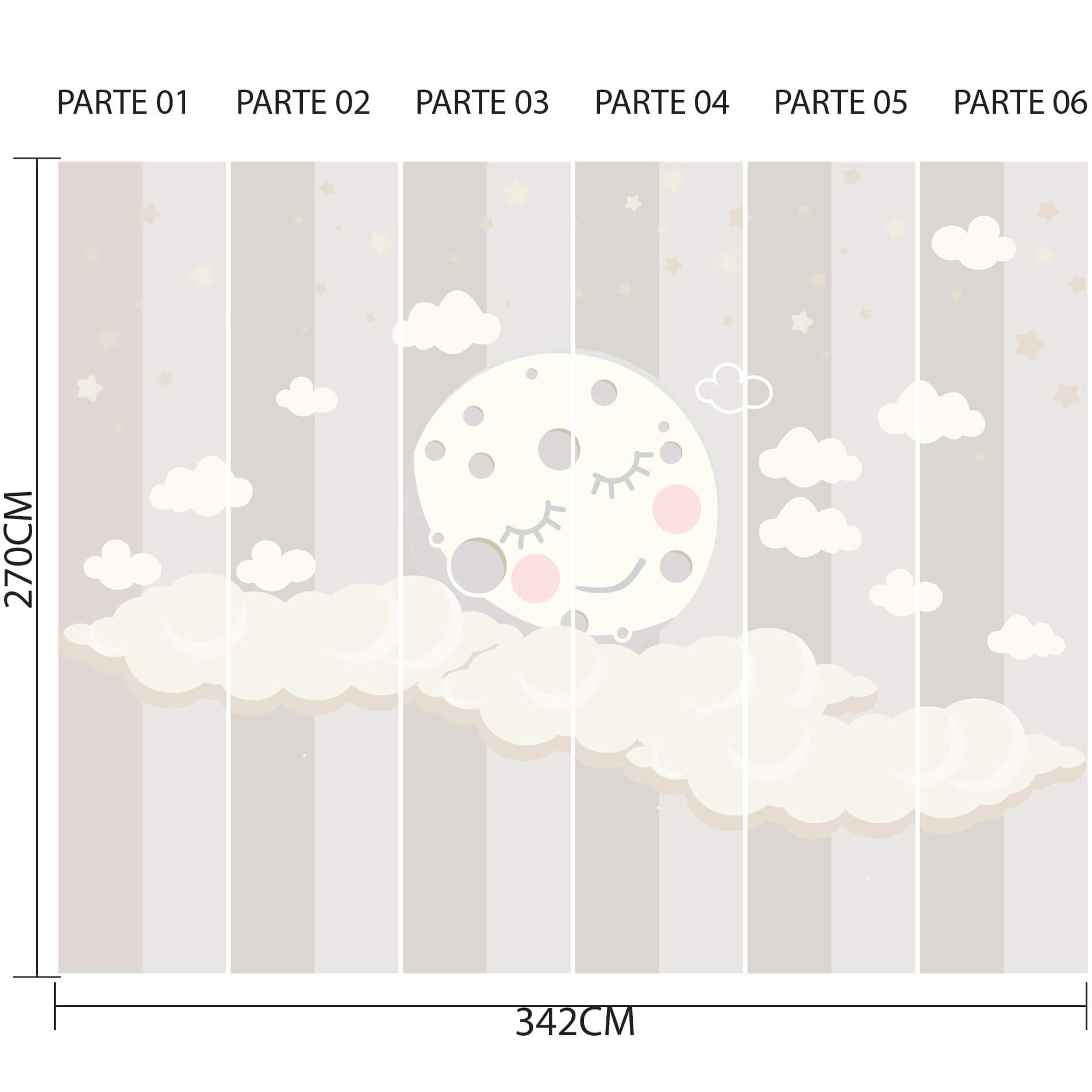 Papel de Parede Quarto Bebê Lua Hora de Dormir Painel 9m²