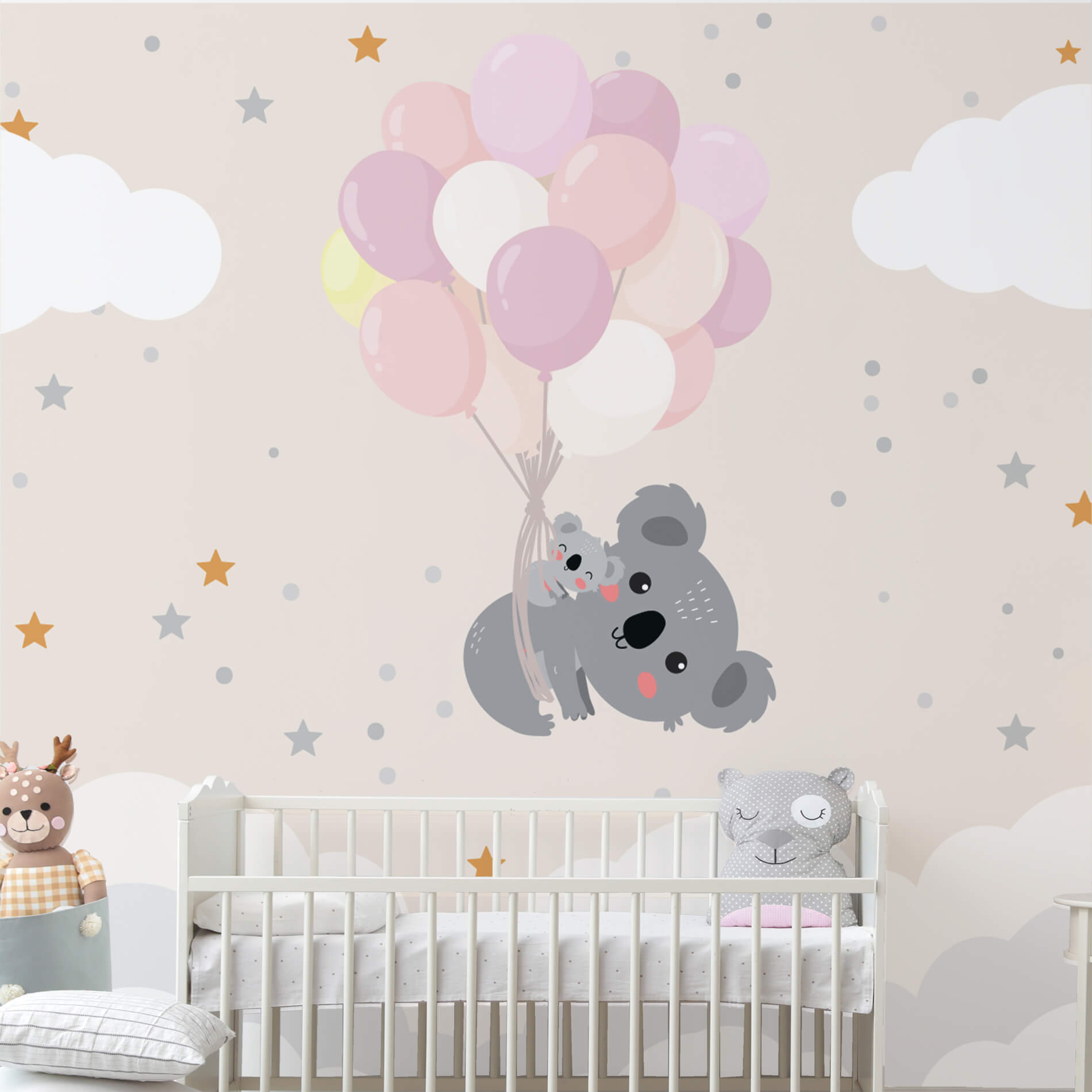 Tudo o que você precisa saber sobre Papel de Parede Quarto Bebê Mamãe Coala e Balões Painel 6m²