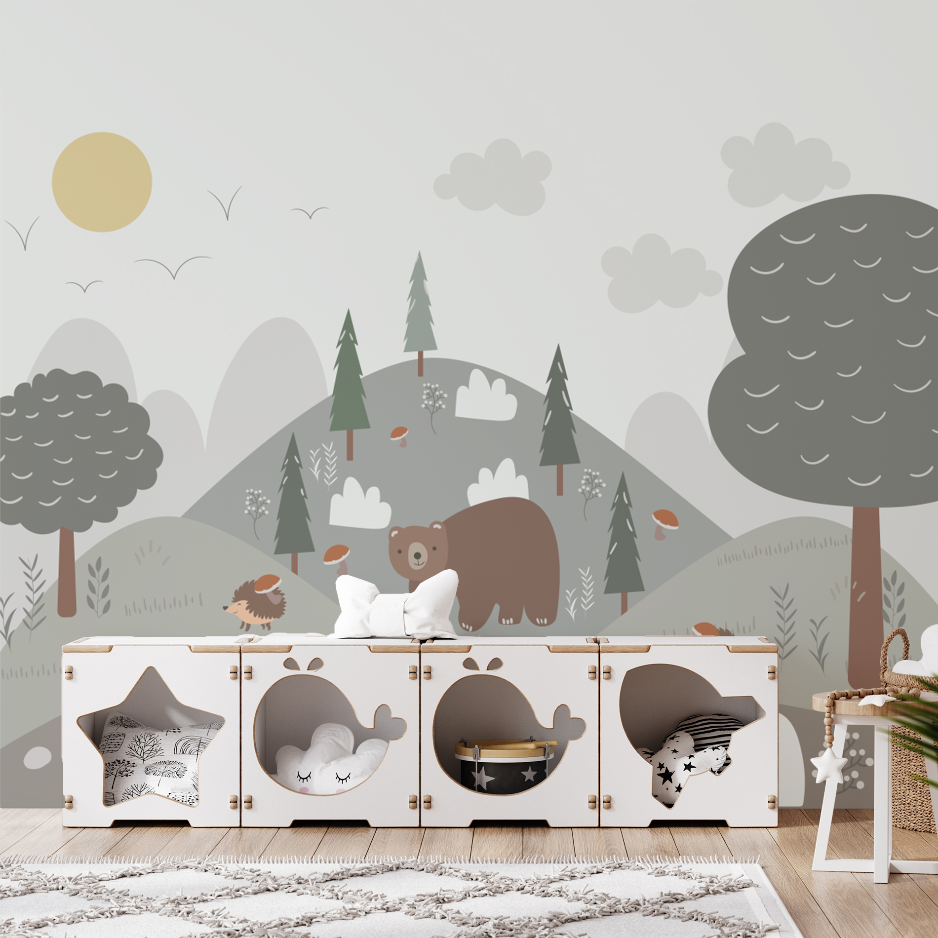 Tudo o que você precisa saber sobre Papel de Parede Quarto Infantil Colinas Ursos e Ouriços 9m²
