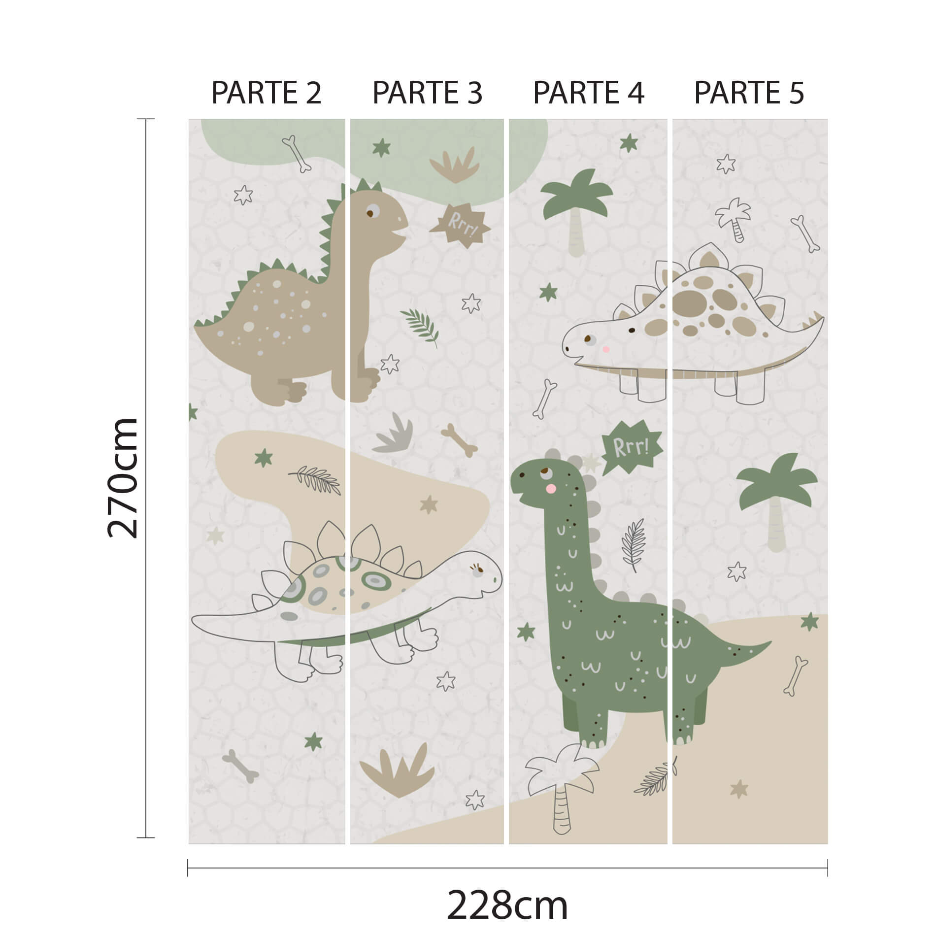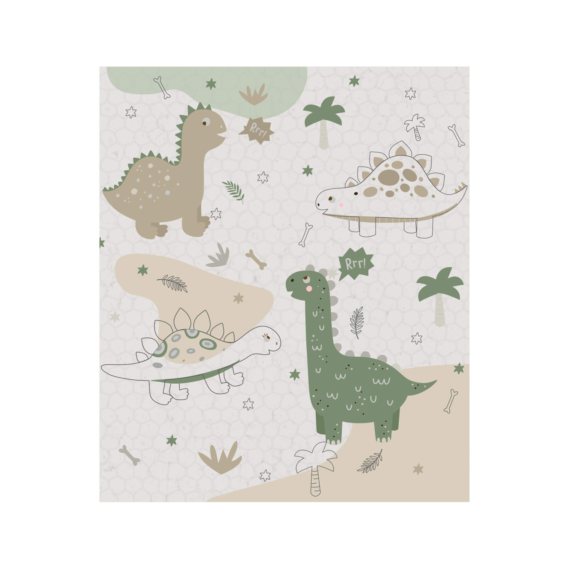 Papel de Parede Quarto Infantil Dinossauros Tons Verdes 6m²: