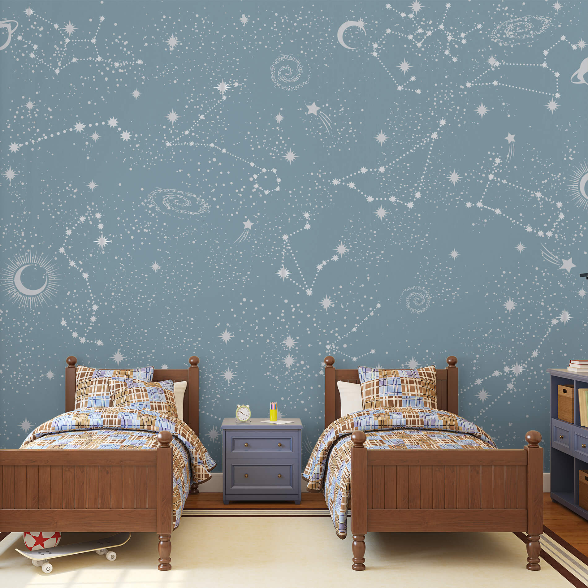 Papel de Parede Quarto Infantil Espaço e Constelação 9m²