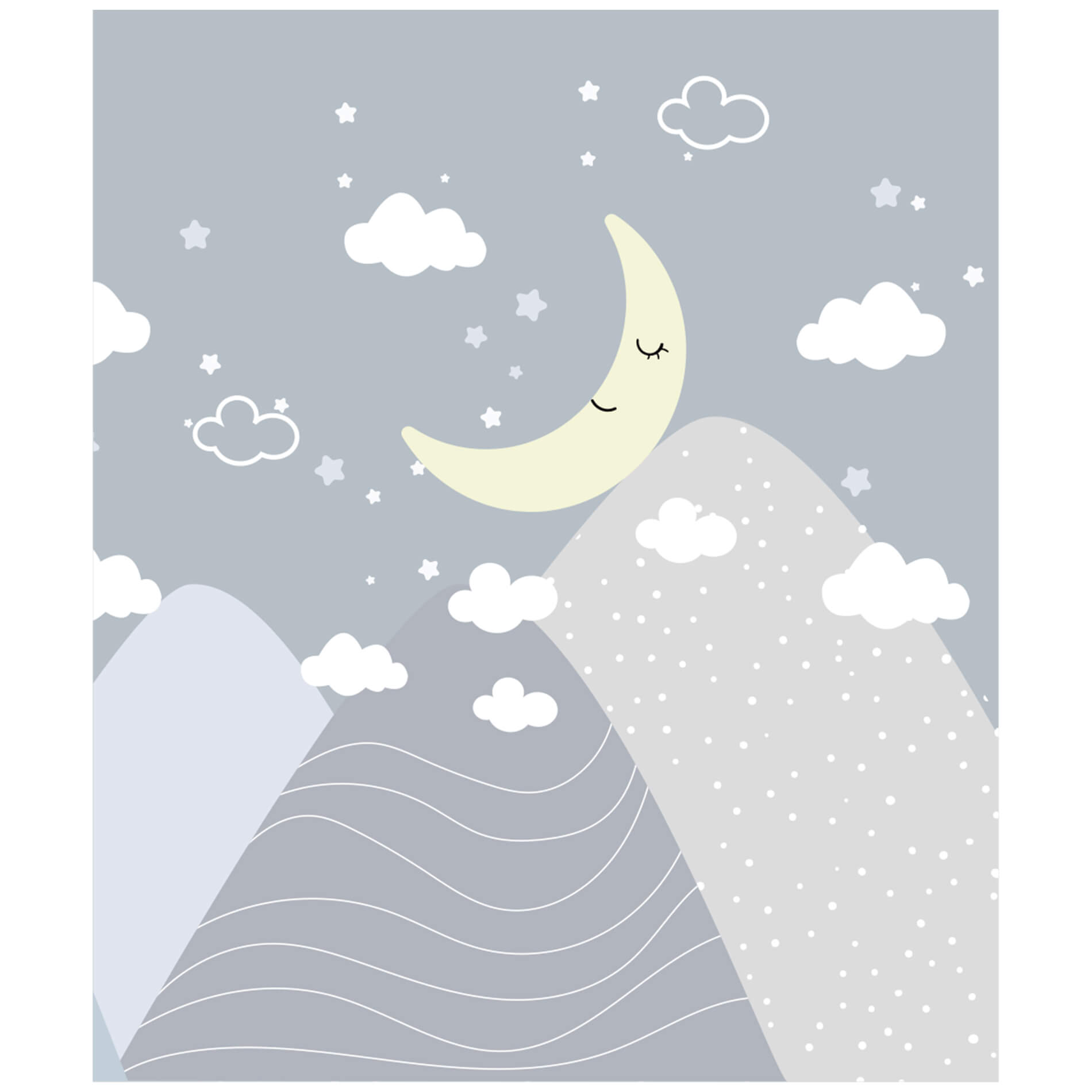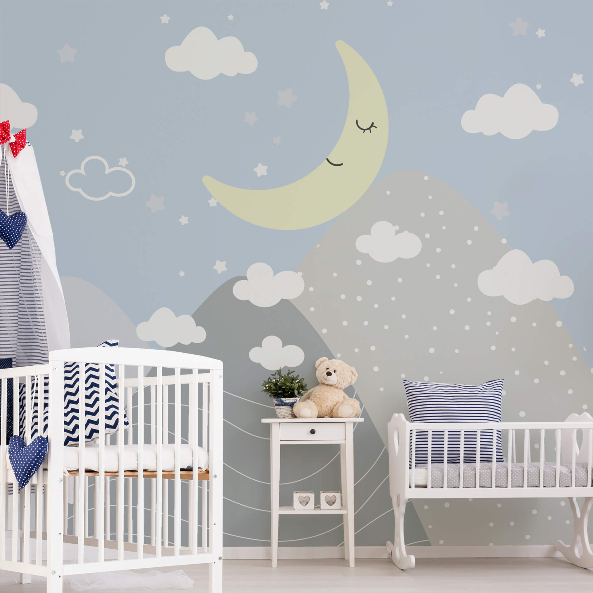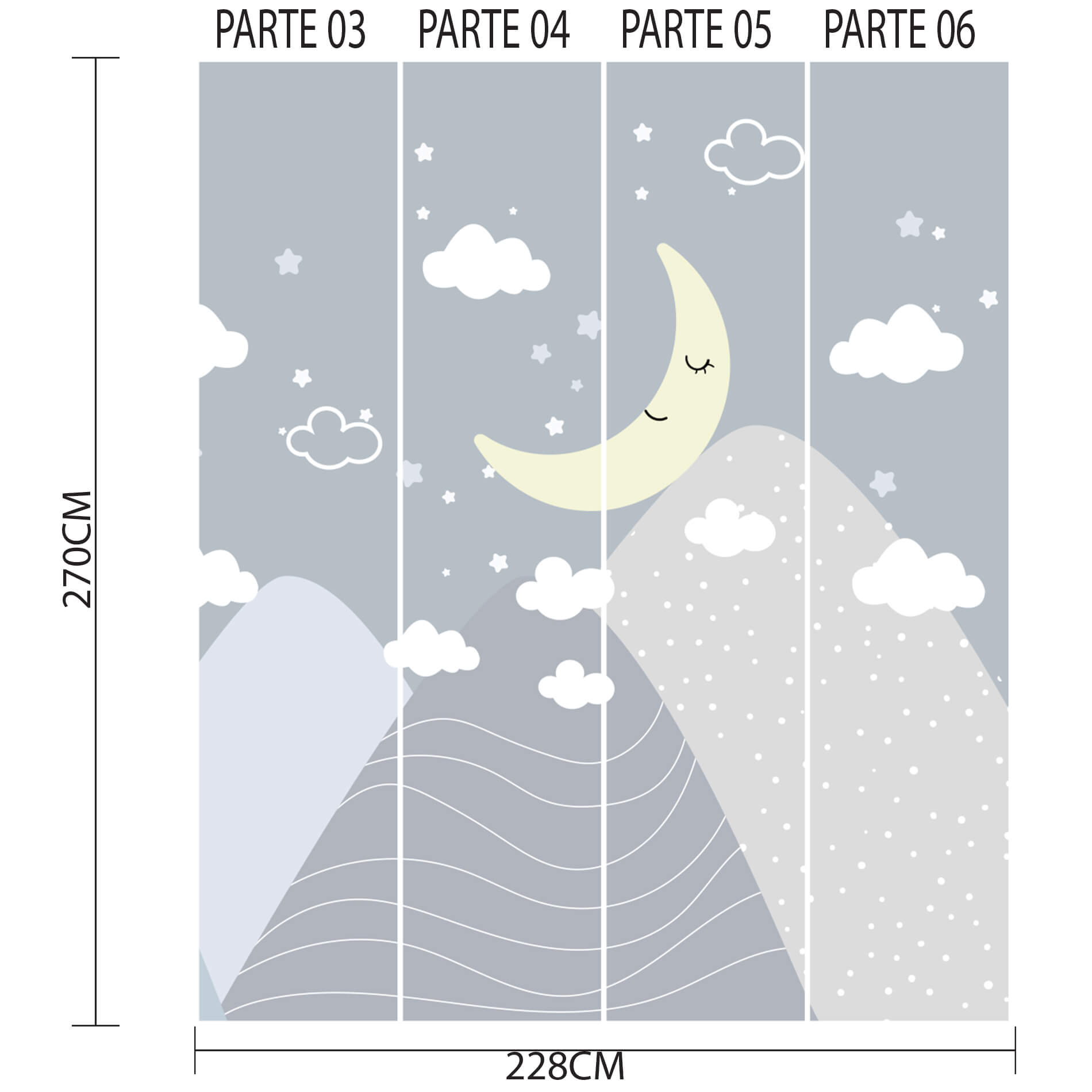Papel de Parede Quarto Infantil Lua e Montanhas Painel 6m²