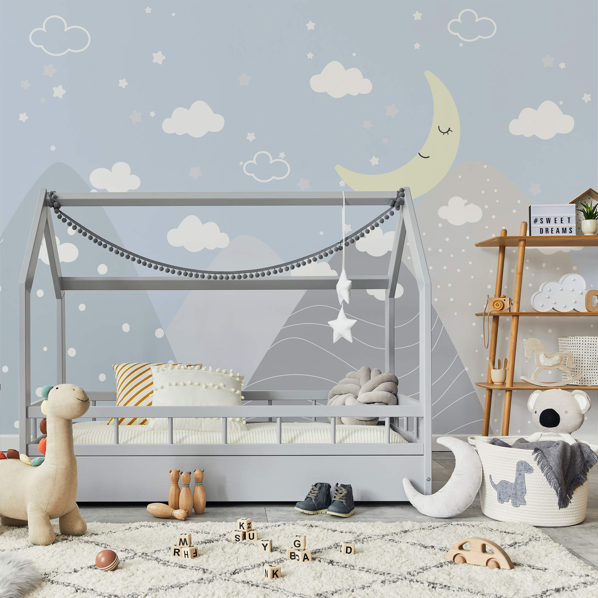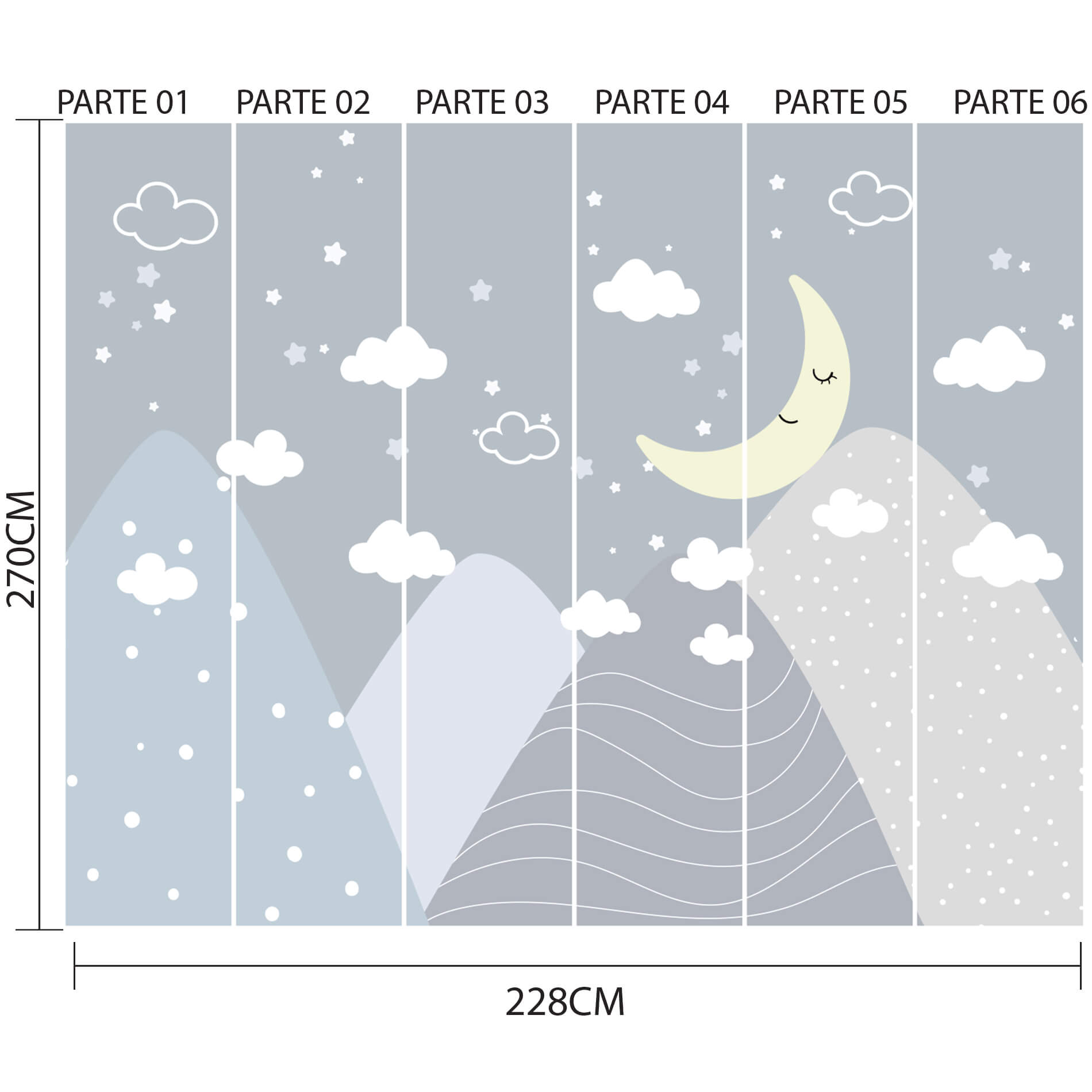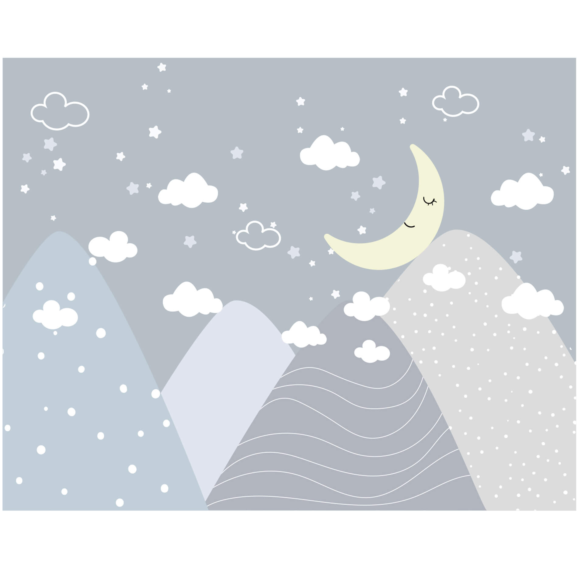 Papel de Parede Quarto Infantil Lua e Montanhas Painel 9m²