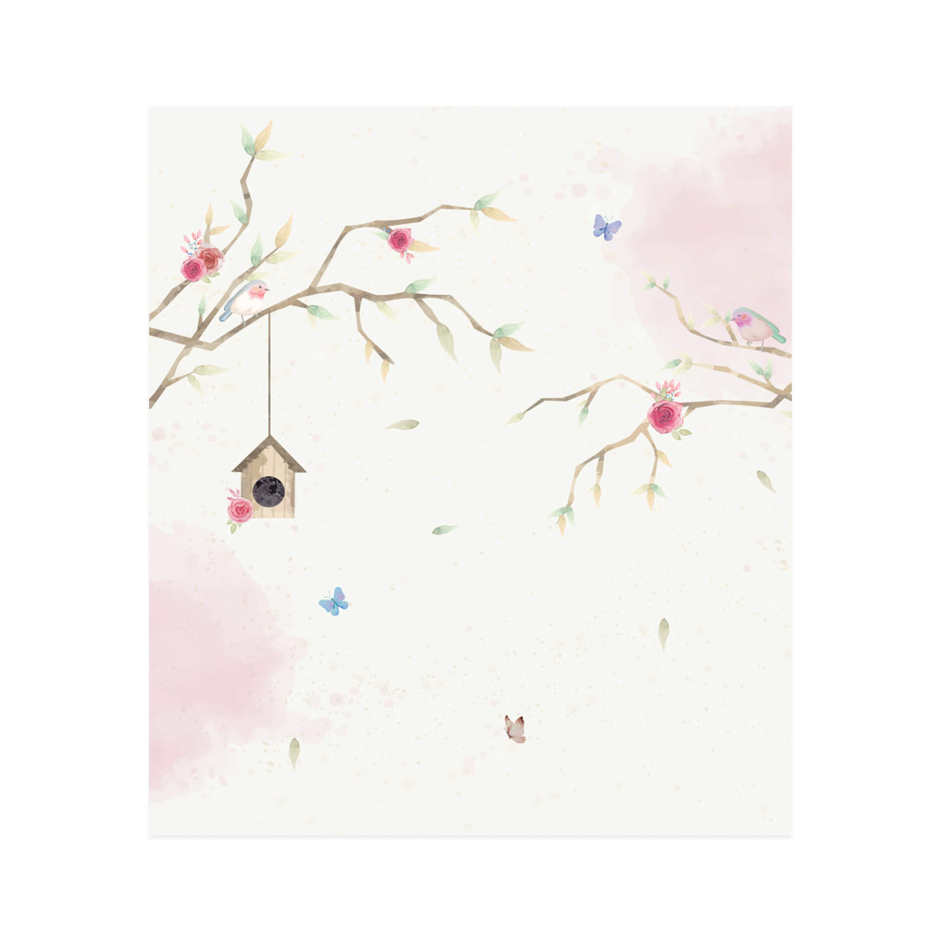 Papel de Parede Quarto Menina Galhos e Pássaros Aquarela 6m²