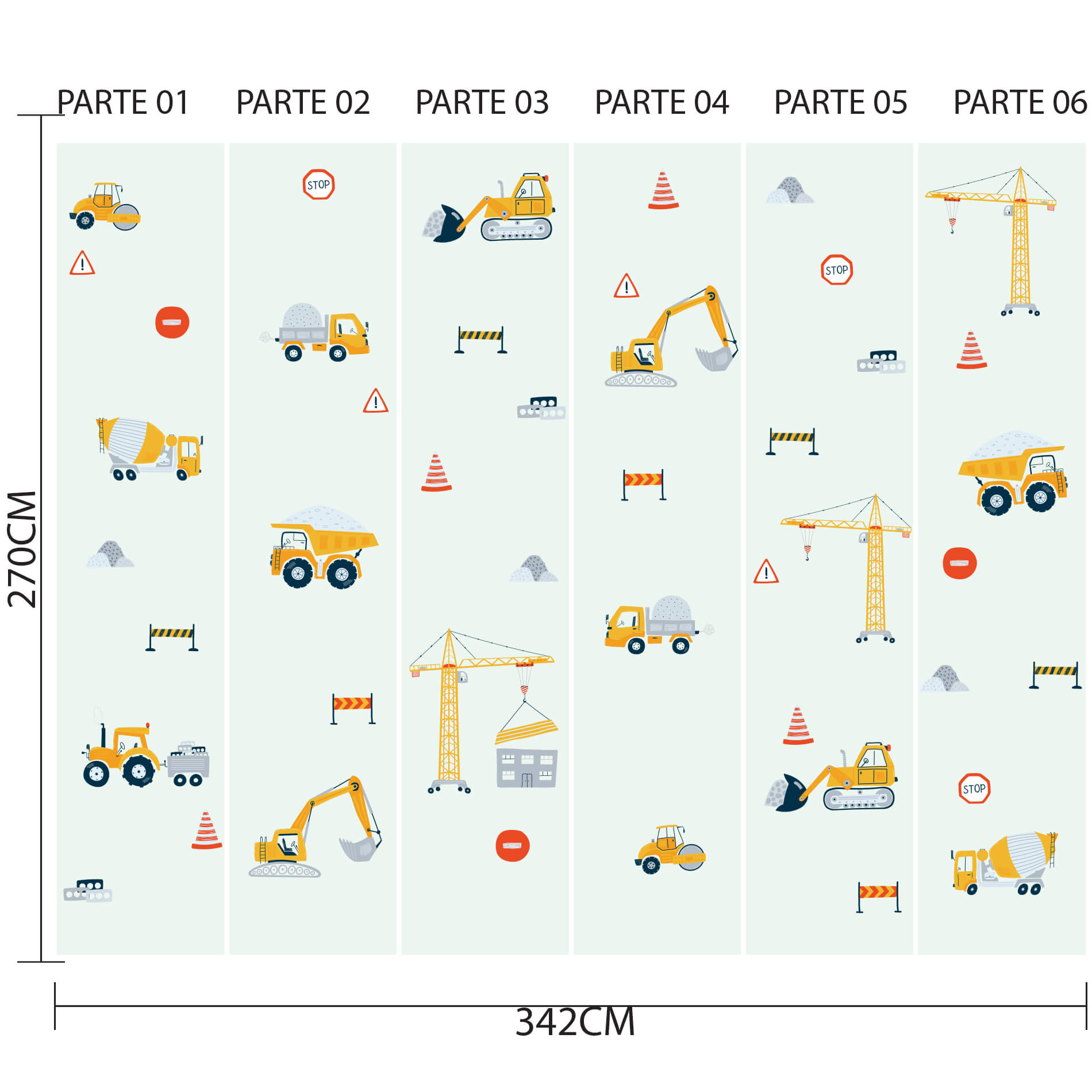Papel de Parede Quarto Menino Máquinas de Construção 9m²