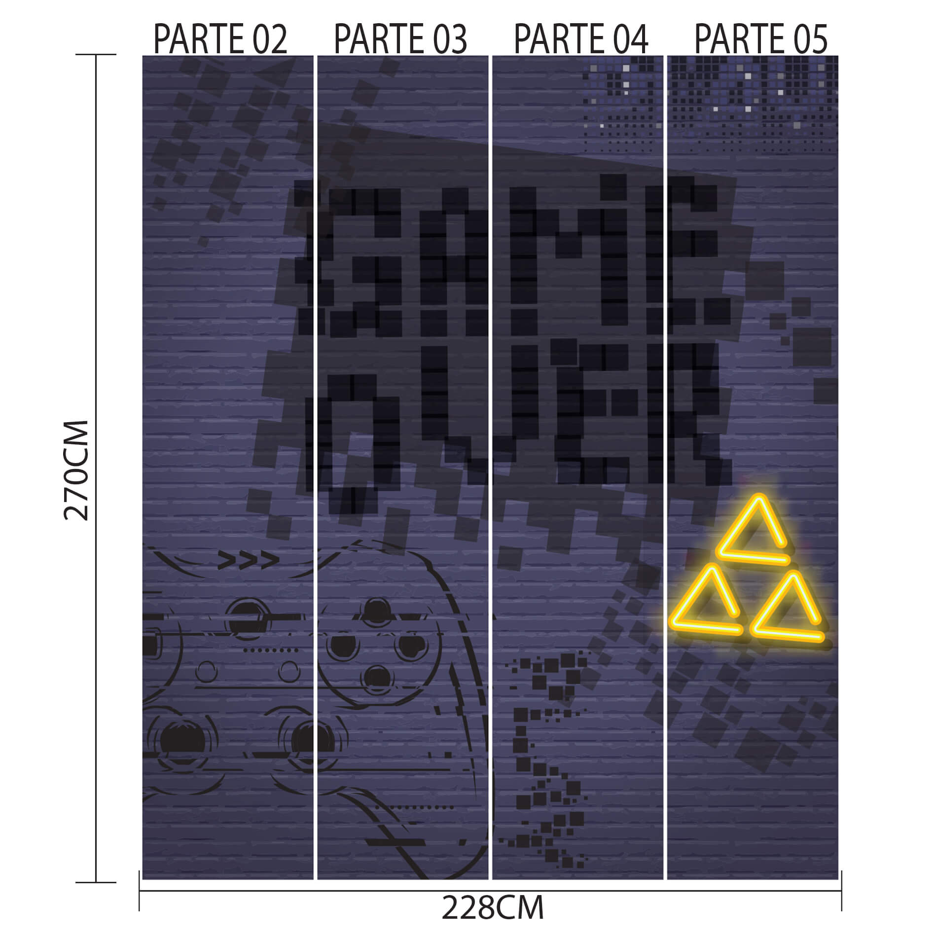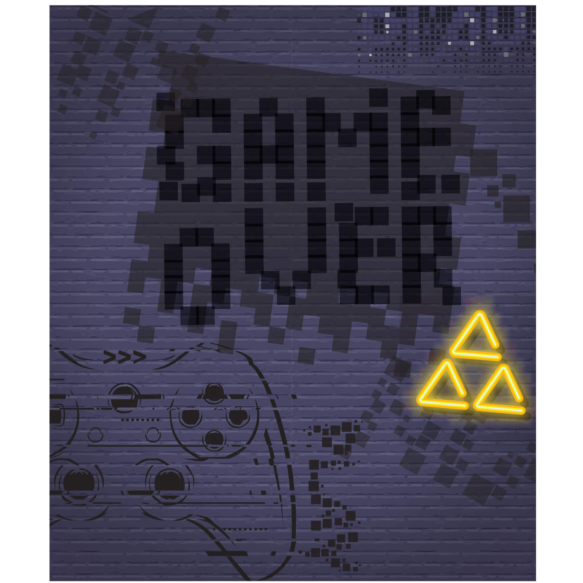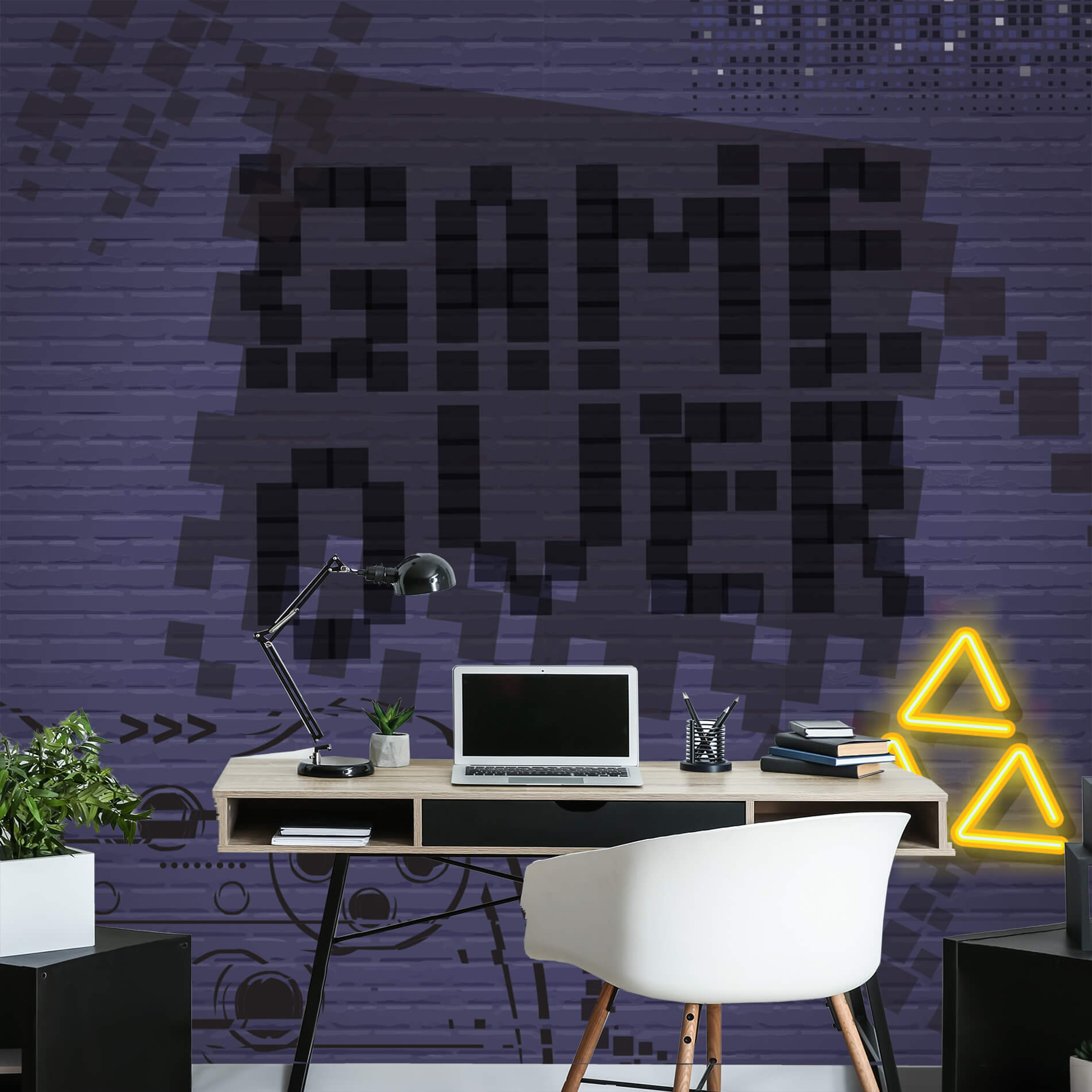 Papel de Parede Quarto Menino Gamer Game-Over Tijolos 6m²