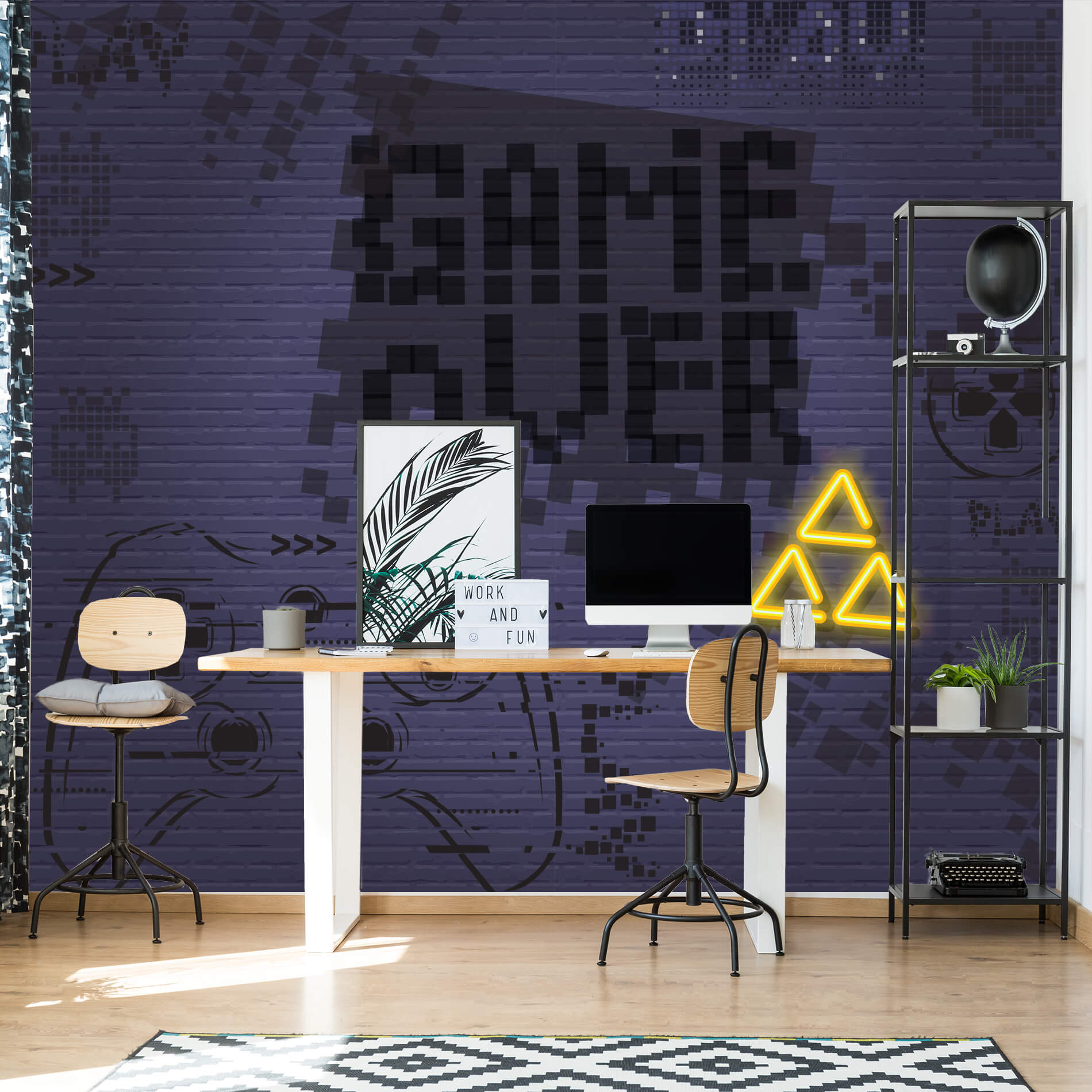 Papel de Parede Quarto Menino Gamer Game-Over Tijolos 9m²