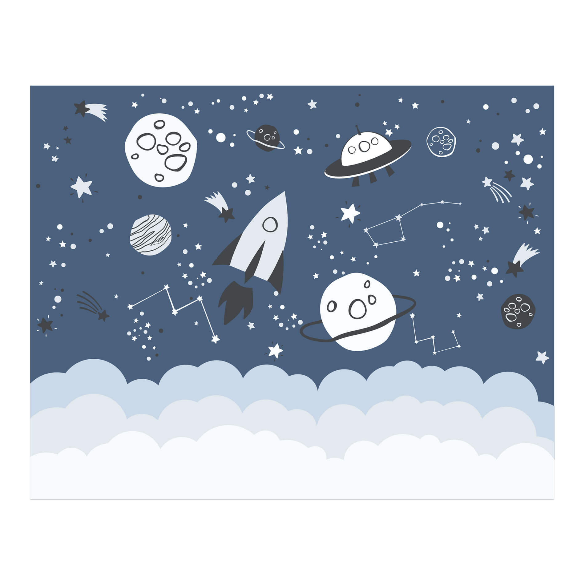 • Tipo de produto: Papel de parede autoadesivo com tema Planetas e Naves no Espaço, ideal para quartos infantis.