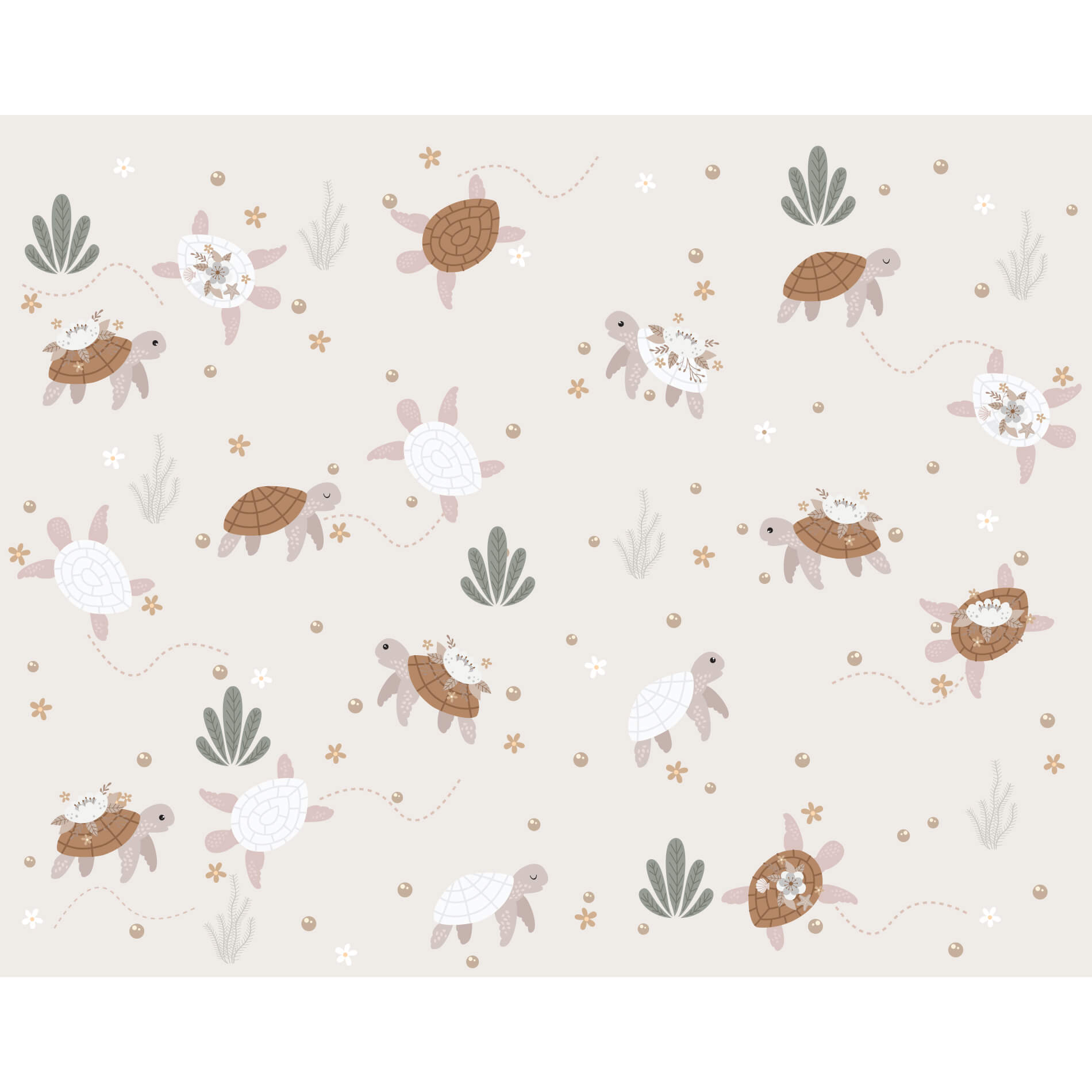 Papel de Parede Quarto Tartarugas e Flores Fundo do Mar 9m²
