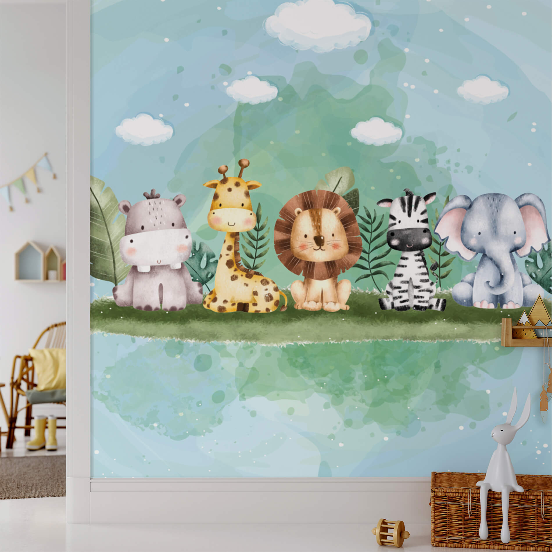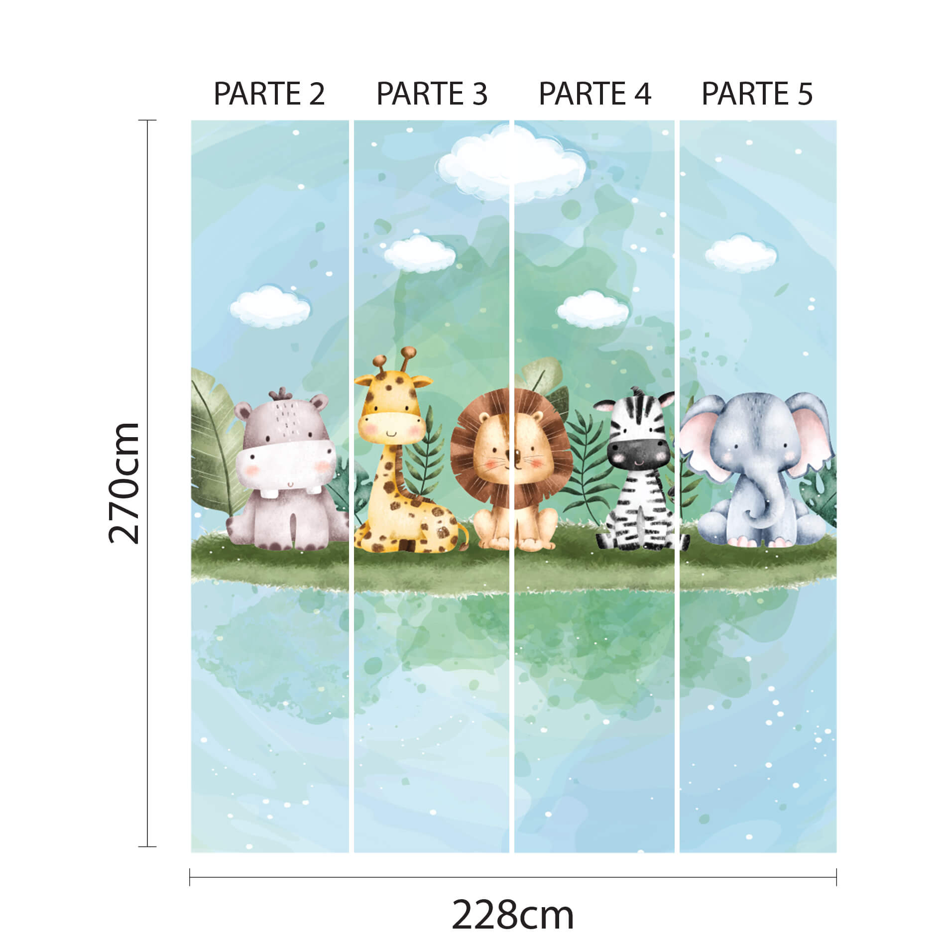 Papel de Parede Safari Animais da Selva Aquarela Painel 6m²: