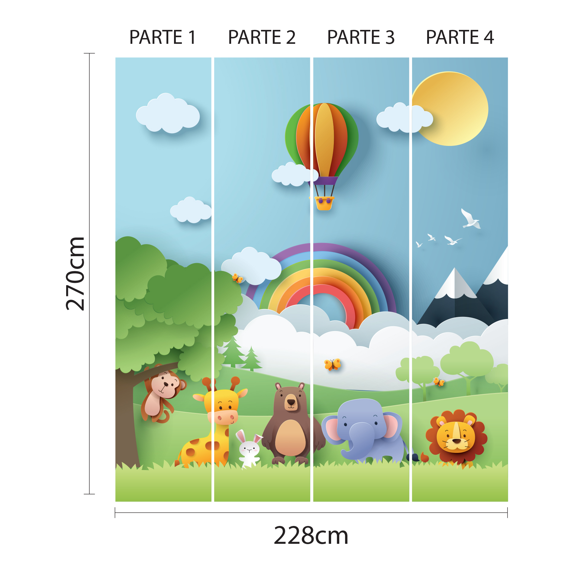 Papel de Parede Safari Colorido Quarto Infantil e Bebe cobre 6m²