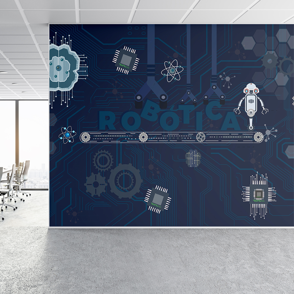 Tudo o que você precisa saber sobre Papel de Parede Escola Sala de Robótica Tons Azul 9m²